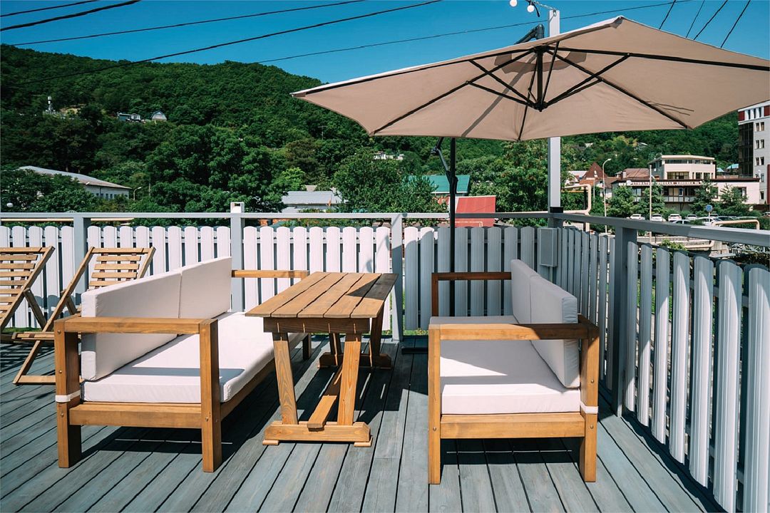 телевизор, Wi-Fi, кондиционер, фен, микроволновая печь, утюг, ванна или душевая кабина, банные полотенца, тапочки, гигиенические средства, балкон, кровать «Queen size», стулья, шкаф для одежды, мебельный гарнитур, чайный набор, чайник, раковина, душ, вид на реку, ламинат, стол, туалет, мини-холодильник, кухонный уголок, москитная сетка, вид на горы, номер для некурящих, общественный бассейн, услуги прачечной (платно), мыло, можно с питомцами, баняВ гостиничном номере
