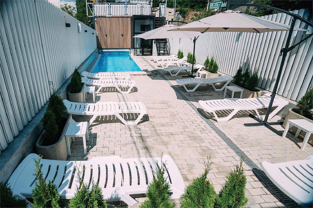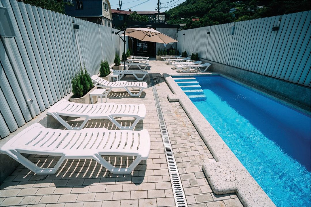 На территории гостевого дома работает SPA-центр с крытым бассейном и зоной джакузи, сауной, хаммамом и тренажерным залом. Бассейн с пресной водой функционирует круглогодично.