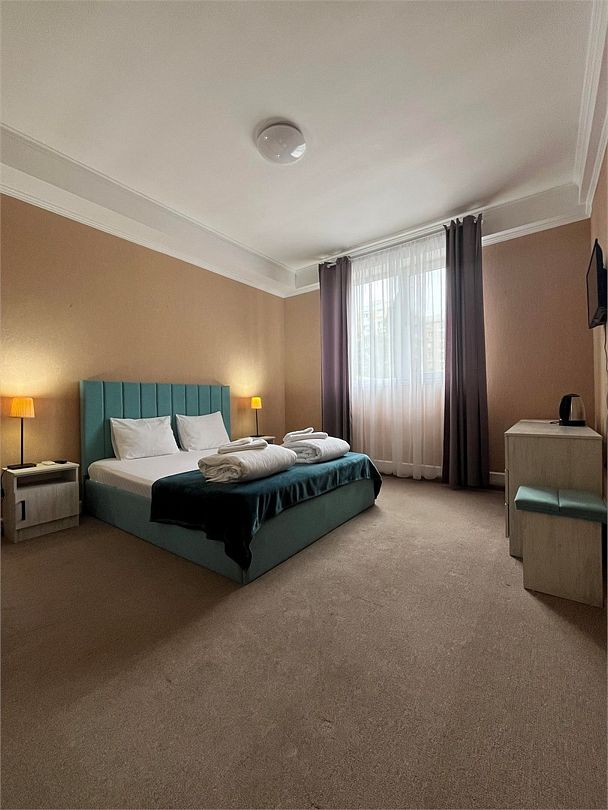 Двухместный номер с двуспальной кроватью и собственным санузлом.Услуги и удобства