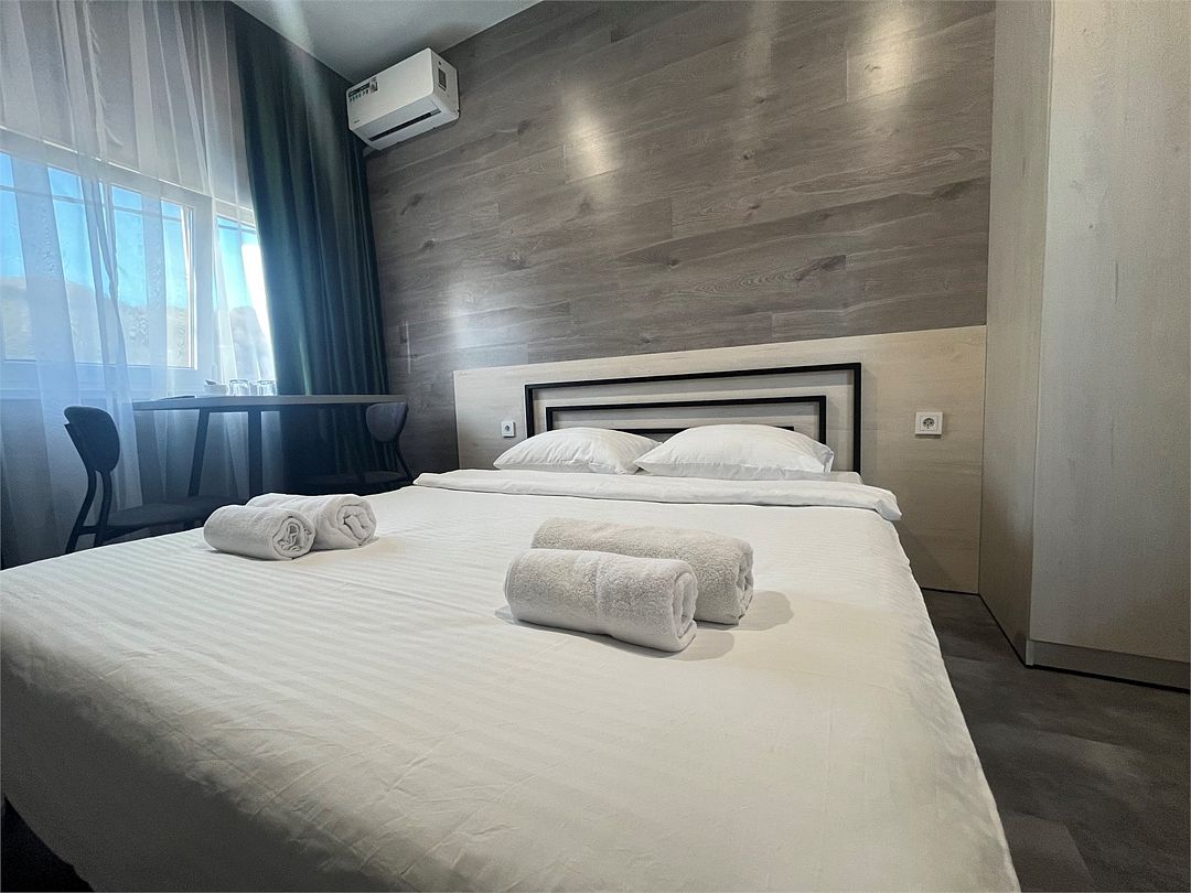 Wi-Fi, кондиционер, банные полотенца, тапочки, двуспальная кровать, ортопедический матрас, тумбы, шкаф для одежды, вешалки, зеркало, чайный набор, обслуживание номеров, унитаз, раковина, ковровое покрытие, отопление, стаканы, стул, стол, туалетные средства, телевизор с плоским экраном, москитная сетка, можно с питомцамиВ гостиничном номере