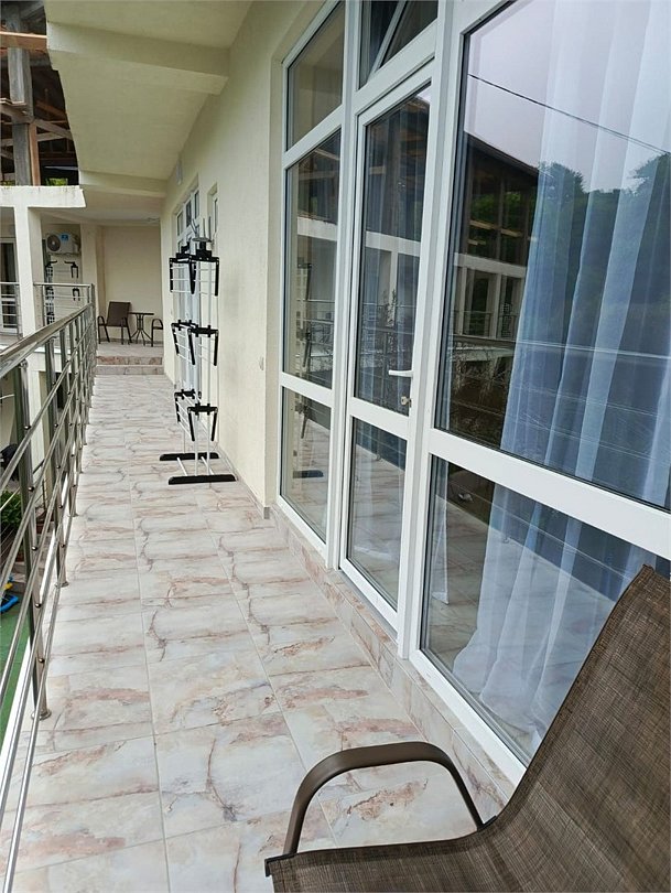 Просторный четырехместный номер персиковых тонов, с балконом, видом на море, большим жк-телевизором с системой Android и сплит-системой.Услуги и удобства