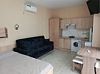 Небольшой уютный номер в светлых тонах, в номере диван-кровать и кресло-кровать, телевизор с системой Android, сплит-система, собственная кухня, оснащенная всем необходимым, отдельный вход с территории, своя зона отдыха на терассе, зона барбекю.Услуги и удобства