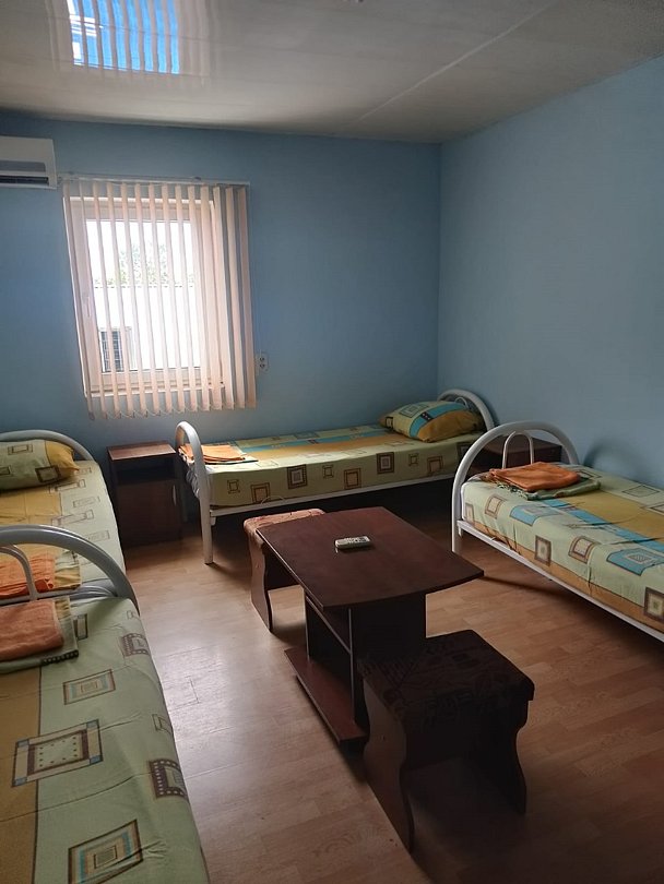 Уютный трехместный номер на третьем этаже» (20 м²) с отдельными кроватями, холодильником и кондиционером. Санузел расположен в конце коридора. Из окна открывается живописный вид.