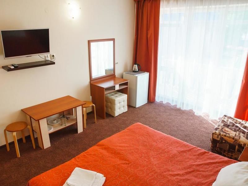 Двухспальная кровать или 2 односпальные, ТВ, холодильник, сплит система, санузел с душем. В стоимость входит: проживание в номере, пользование бассейном, спортивной и детской площадками.