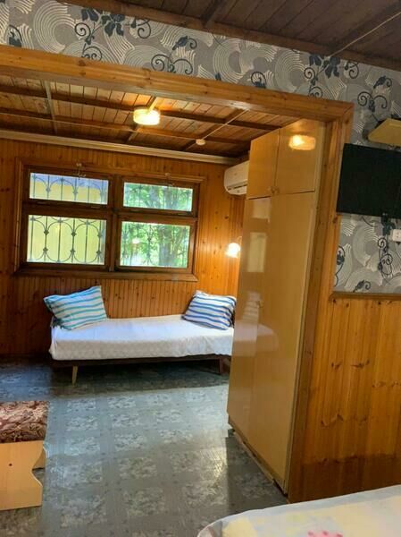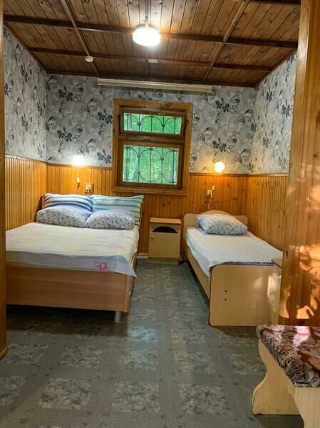В комнате три односпальные кровати. Туалет, душ, кухня общие.