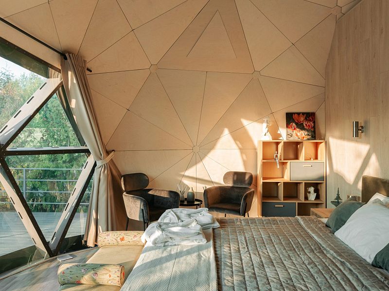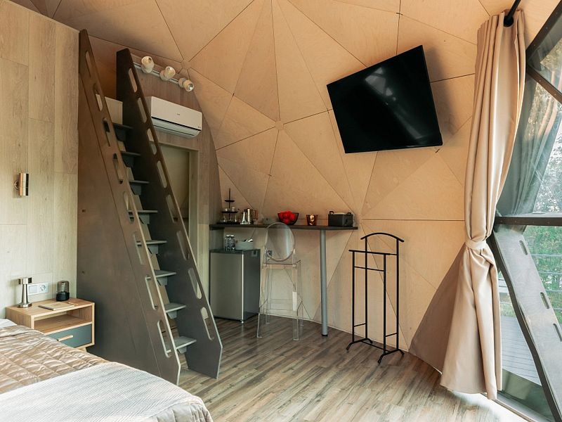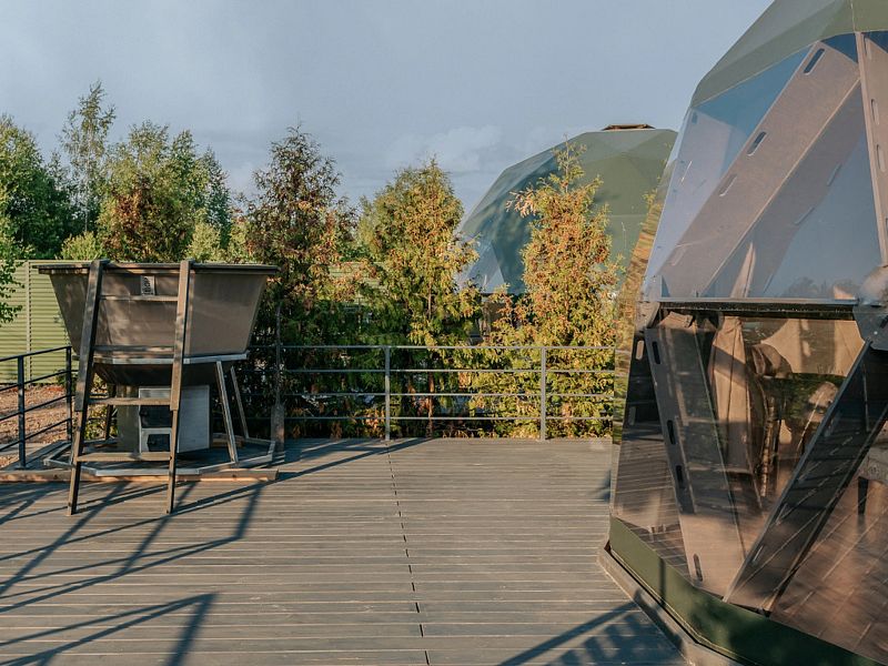 Стильные и уютные купольные домики позволяют насладиться уединением и свежим воздухом в окружении леса, не отказывая себе в высоком уровне обслуживания и удобствах цивилизации.