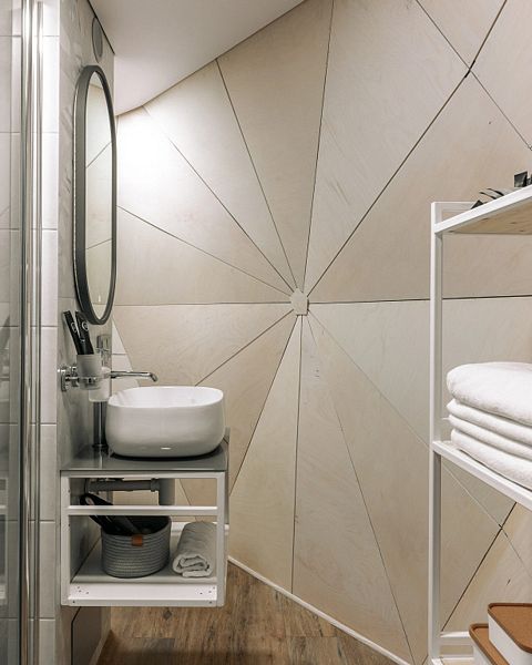 - Душ, зеркало с подсветкой, полотенцесушитель и тёплые полы с подогревом;