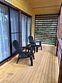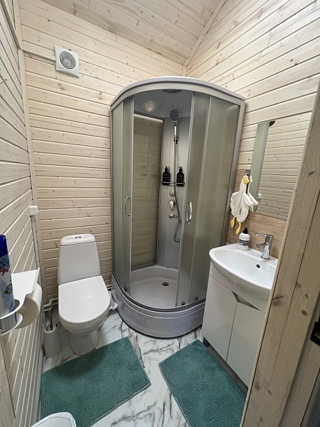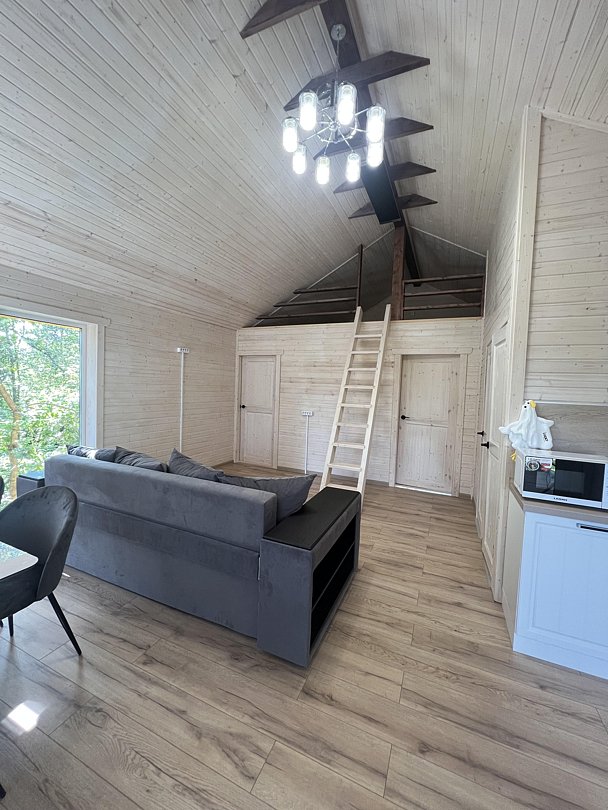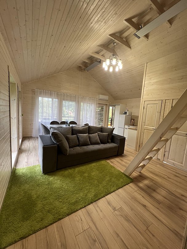 Коттедж с двумя отдельными спальнями, общей гостиной комнатой с большим раскладным диваном (5,6 гость), для 7 и 8 гостя предоставляется надувная кровать в отдельной открытой комнате (в нише). Два санузла.