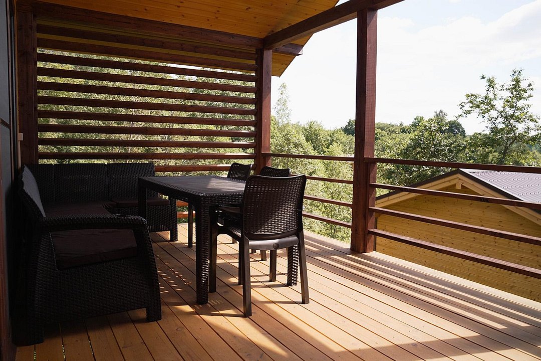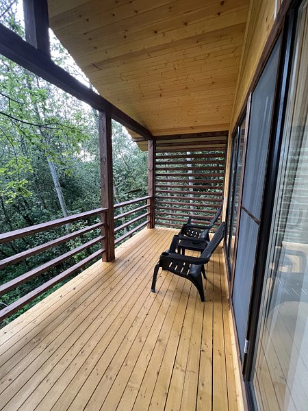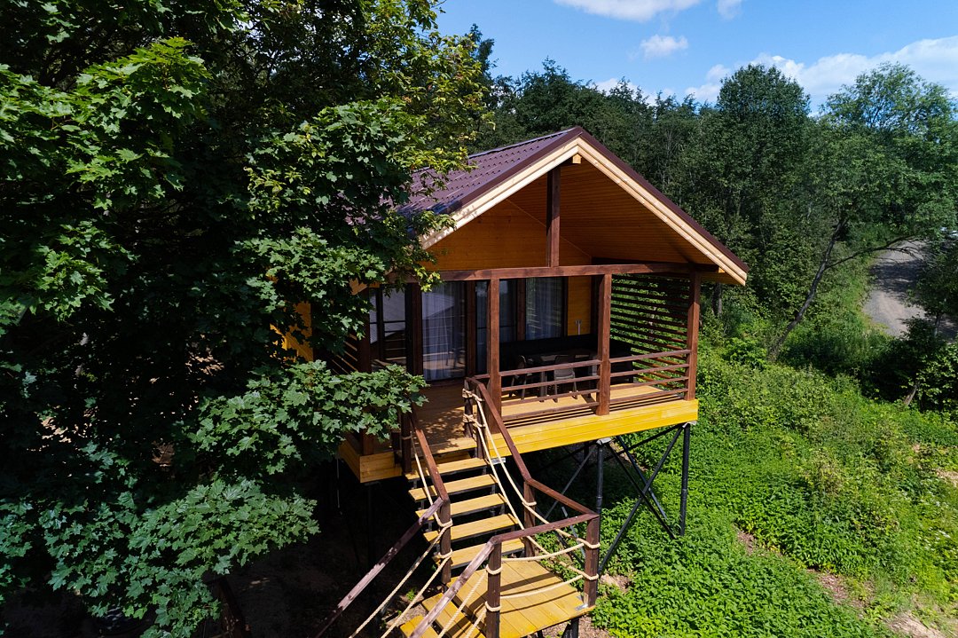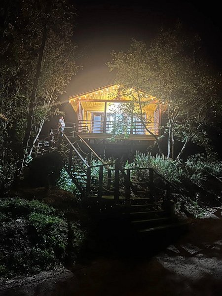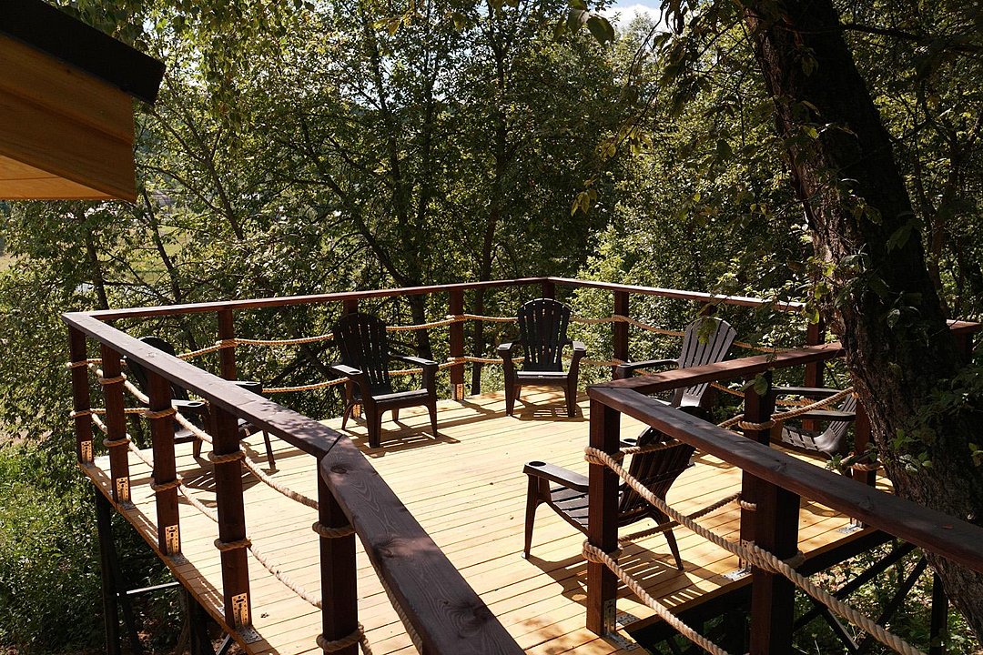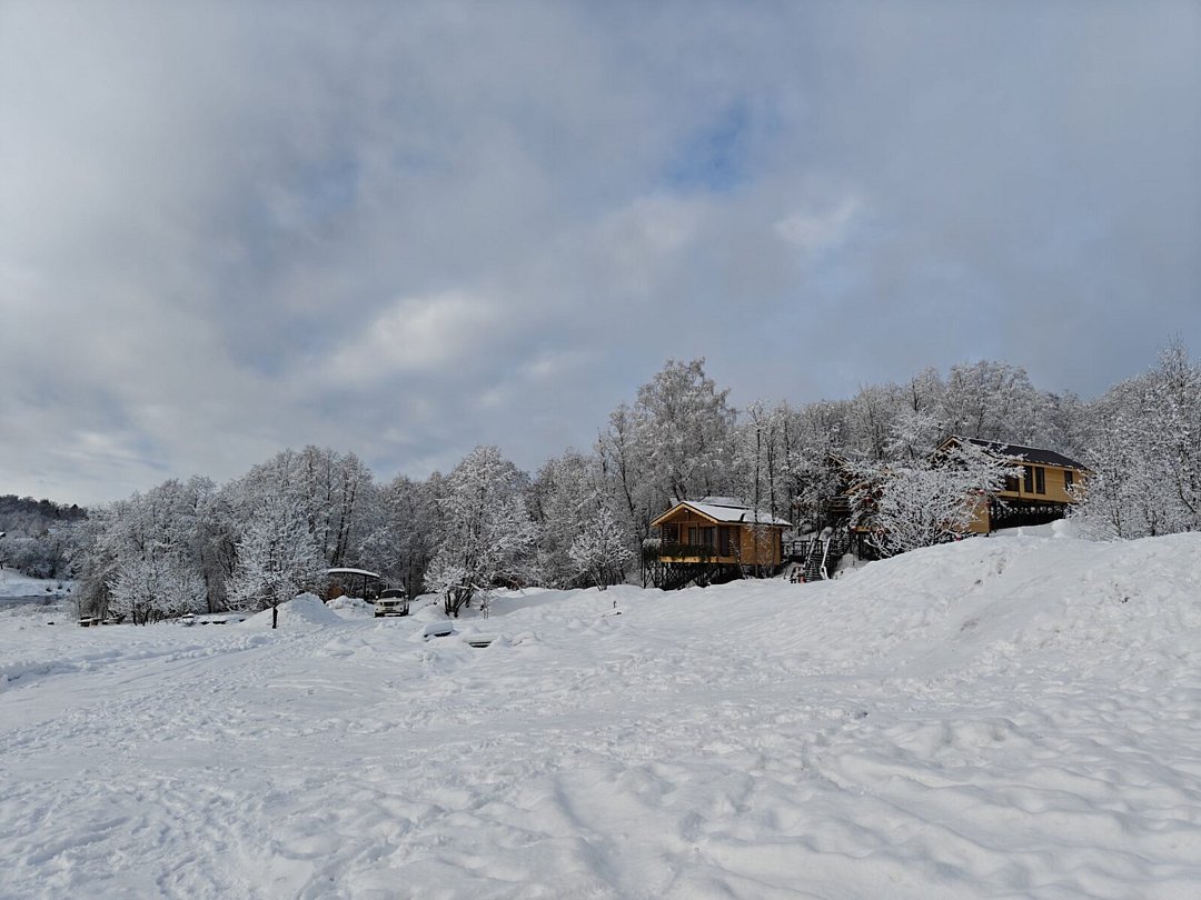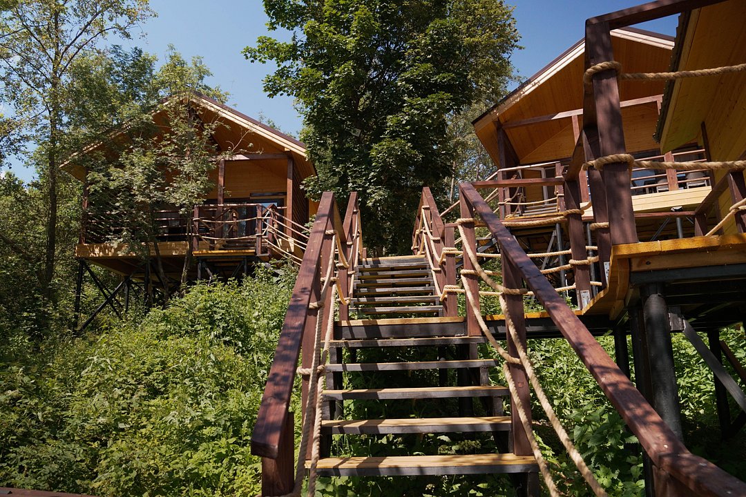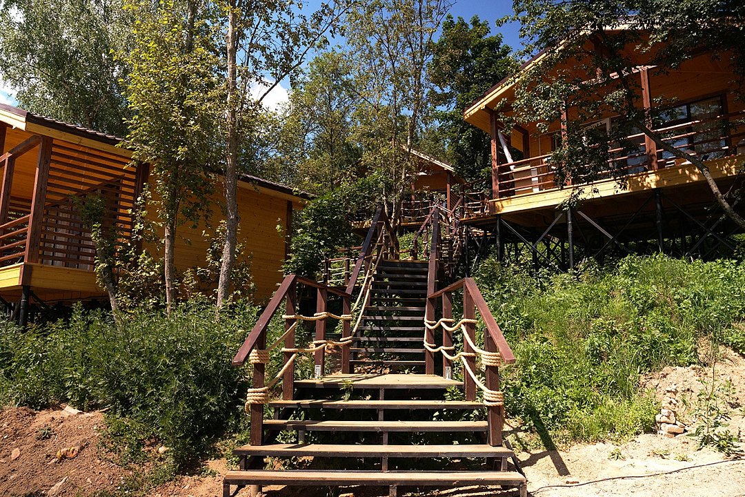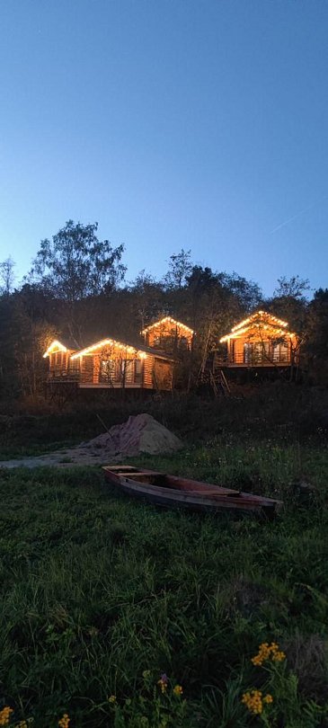 Комплекс состоит из пяти коттеджей с террасами и видом на реку, вмещающих от 2 до 8 человек. В каждом домике созданы комфортабельные условия, есть кухня и мангал.