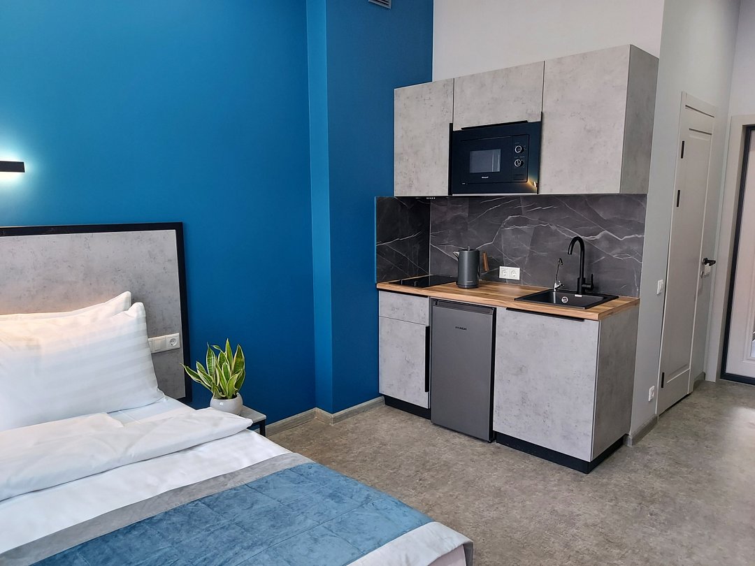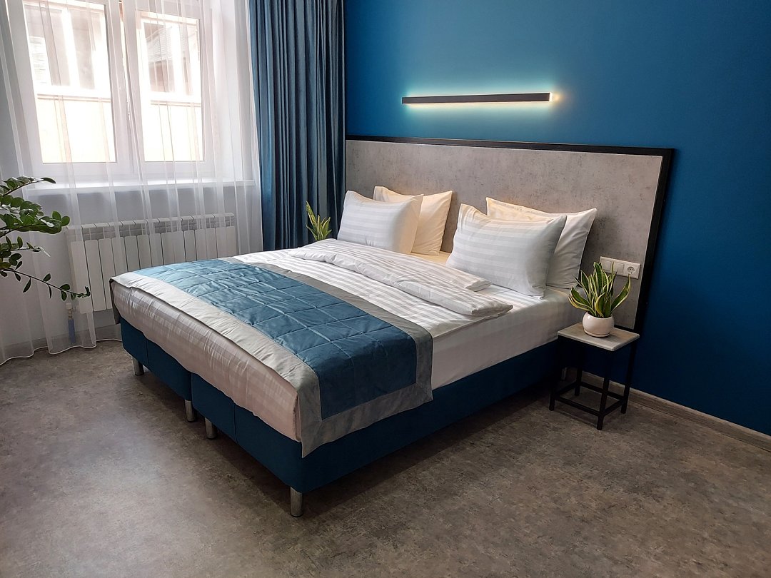 За сутки до заезда Вам позвонит администратор для уточнения деталей по времени заезда и комплектации номера. Звонок будет с номера 8-950-922-69-99, будьте пожалуйста на связи. У нас имеется парковка, нужно сообщить администратору номер авто. Описание номера: в номере современная гостиничная кровать размера 180*200. Варианты размещения по выбору гостей: Двухспальная кровать размера king-size ИЛИ две односпальные кровати. По запросу (платно) можем предоставить доп.кровать для третьего гостя и/или люльку для малыша. В каждом номере комфорт продуман до мелочей. Имеется оборудованная кухня, чай, питьевая вода, чайник, холодильник, микроволновка, варочная плита, набор посуды, wi-fi, телевизор, кондиционер, отопление, гостиничное белье и полотенца, душевые принадлежности, фен, тапочки, халаты (платно), окно со шторами блэкаут. Стандартное размещение в номере для двух гостей. Размещение ребенка до 5 лет на имеющейся кровати с родителями бесплатно. Обратите внимание, что оплаченный номер держится за гостем полные сутки, если номер не оплачен, то номер держится до 17ч. Если заезд позже, то необходимо внести предоплату. Работаем с физическими и юридическими лицами, документы подготовим.В номере