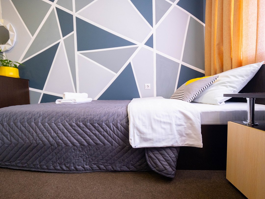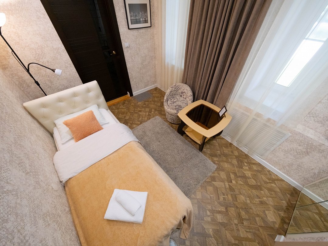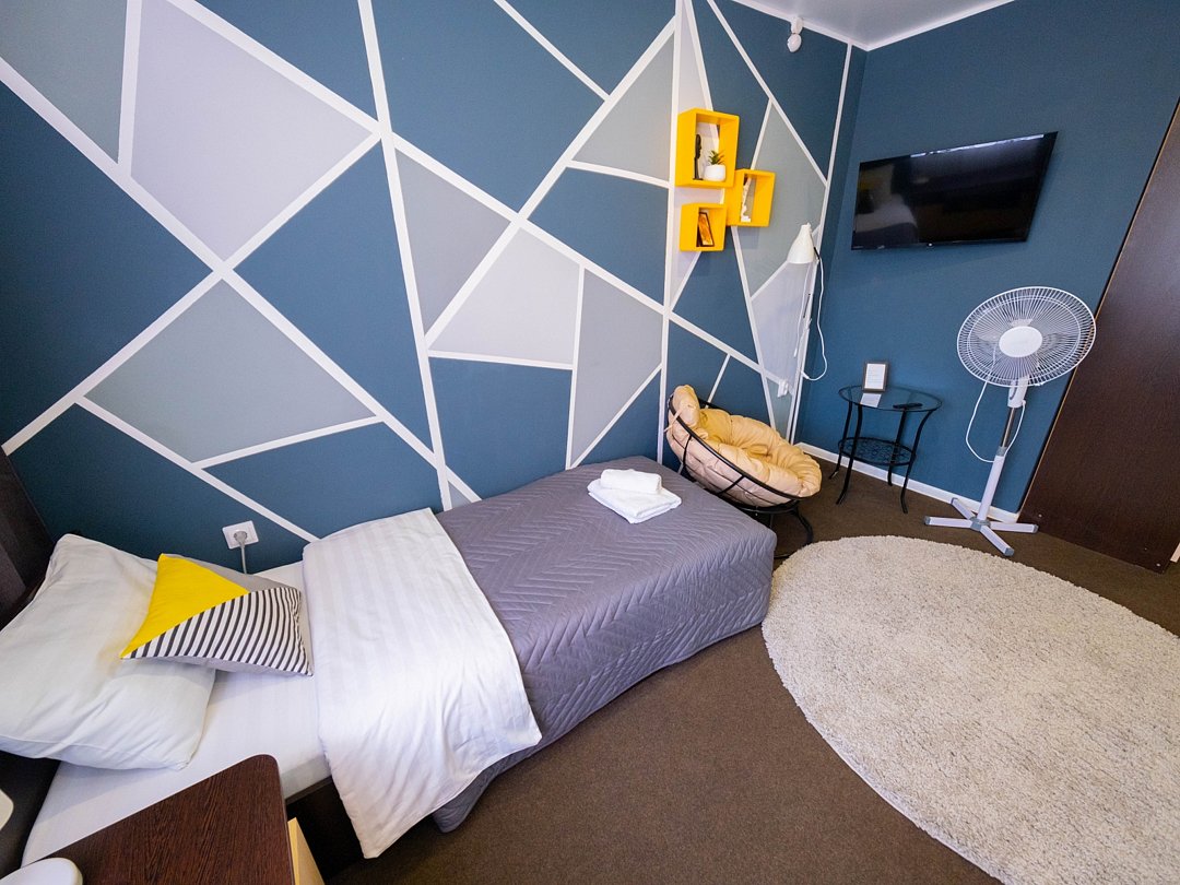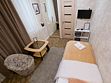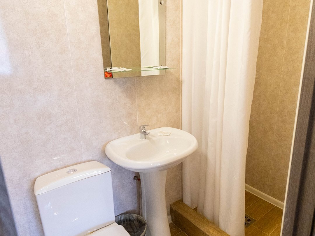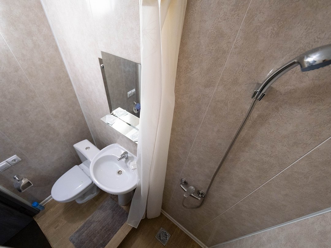 Удобный небольшой номер, созданный специально для гостей, предпочитающих функциональность и комфорт. Идеален при одноместном размещении. В номере расположены: односпальная кровать, встроенный шкаф с зеркалами, телевизор, мягкий пуфик с журнальным столиком. В ванной комнате есть всё необходимое для Вашего отдыха: душевая кабина, раковина, туалет, а так же гигиенические принадлежности: мыло, шампунь, гель для душа, фен, полотенца, тапочки. При необходимости гостям предоставляются утюг и гладильная доска. На территории всего отеля работает бесплатная WiFi сеть.В номере
