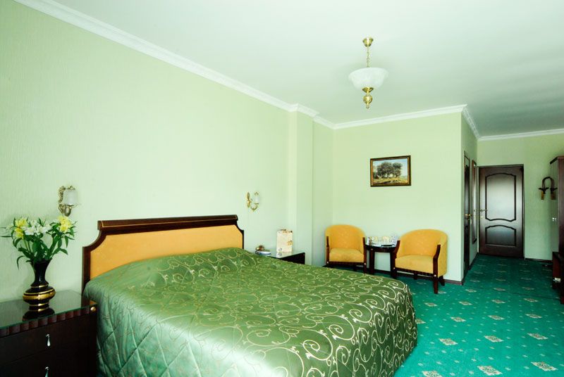 Эту категорию представляют номера площадью от 30 м². Убранство комнат оформлено в изумрудно-пастельных тонах, располагающих к приятному и размеренному отдыху.