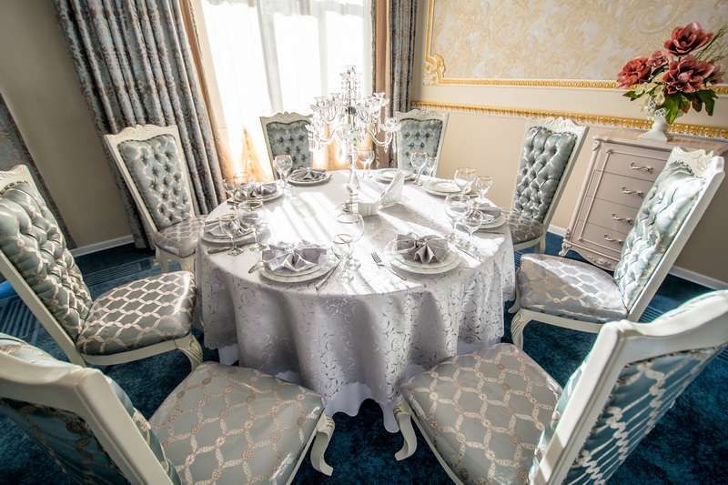 Банкетный зал «Эрмитаж» располагается в отдельном двухэтажном здании и погружает гостей в элегантный мир, где тульский размах соединяется с петербургской роскошью. Этот просторный зал, вмещающий до 150 человек, станет идеальным местом для вашего незабываемого события, будь то свадьба или другое пышное торжество. Роскошные люстры, хрустальные канделябры, ручная лепка и изысканная мебель в стиле арт-деко создают атмосферу истинного дворцового бала, а пастельные оттенки стен лишь дополняют великолепие интерьера.