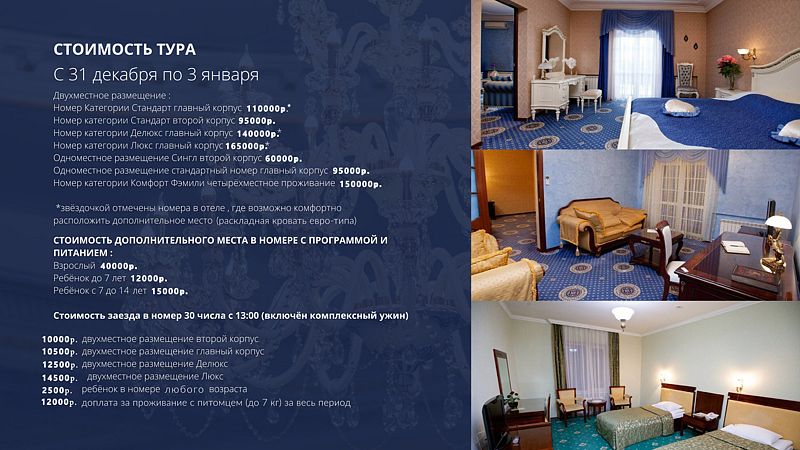 Зимние праздники станут поистине волшебными с системой Ultra All Inclusive, которая включает праздничный банкет, пикник на свежем воздухе и множество развлечений. Устраивайте незабываемые каникулы с 31 декабря по 3 января в нашем изысканном банкетном зале, где вас ждет атмосфера праздника, веселые конкурсы, танцы и удивительные выступления артистов. Этот Новый год станет моментом, который запомнится надолго.