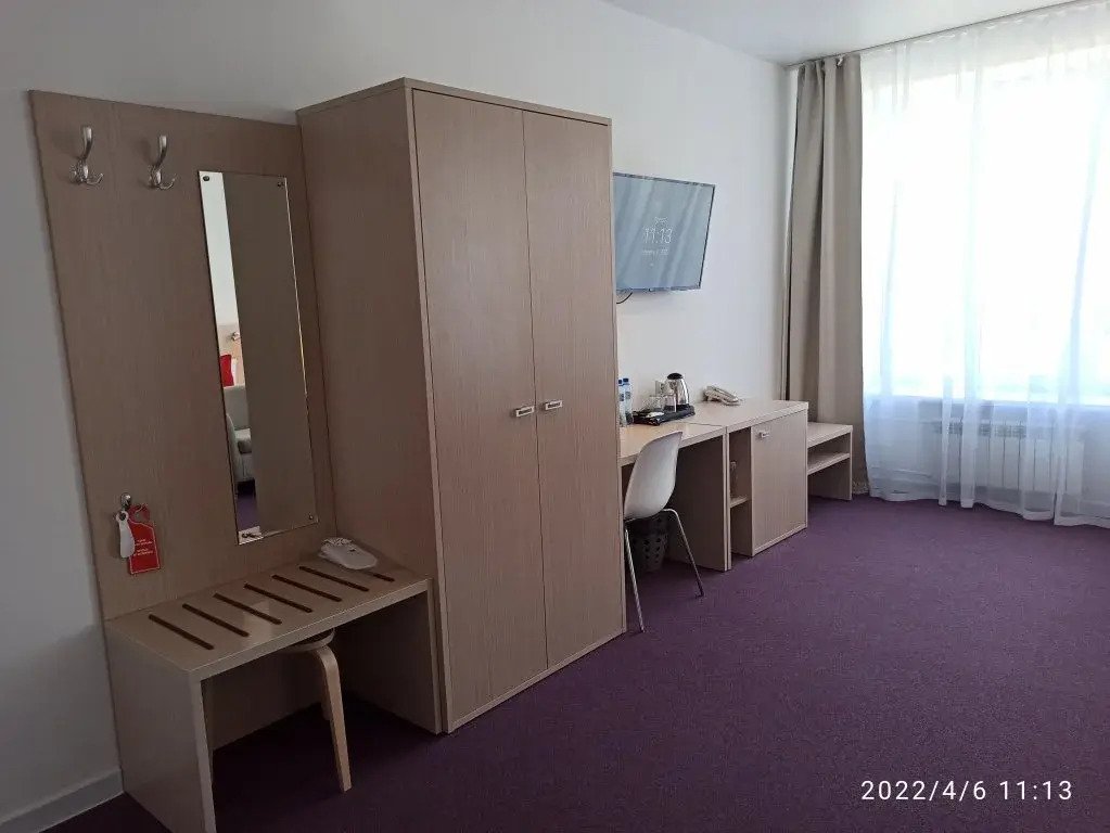 В номере вы найдёте телевизор и халат. Оснащение зависит от выбранной категории номера.