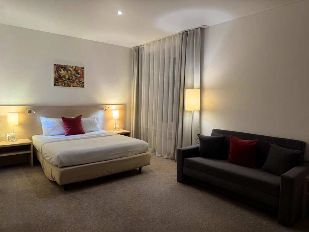 Для тех, кто не представляет отдых без водных удовольствий, есть крытый бассейн. Удобно для гостей с ограниченными возможностями: на верхние этажи гостей поднимает лифт. Сотрудники отеля поддержат беседу на русском.