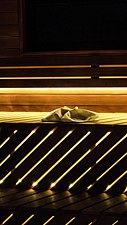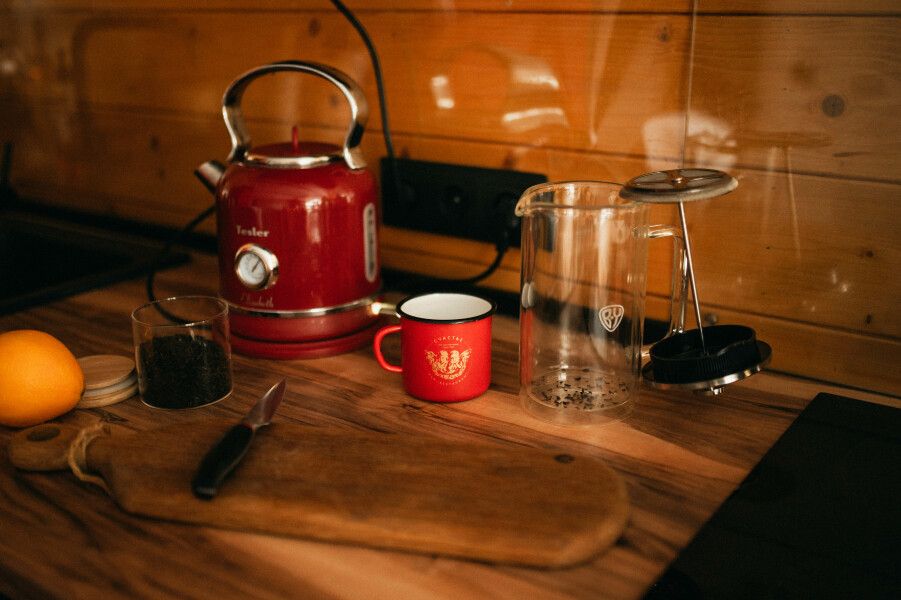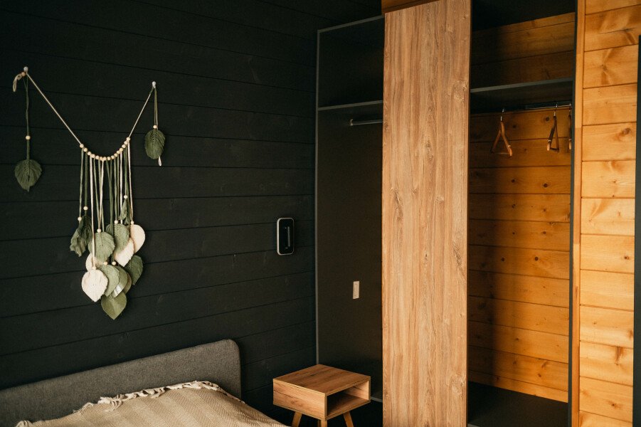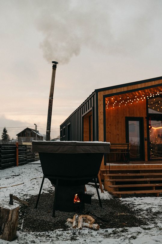 Площадь — 112 кв. м. В доме две спальни, кухня-гостиная с раскладным диваном, санузел, душевая и парная. Вместимость — до шести человек.