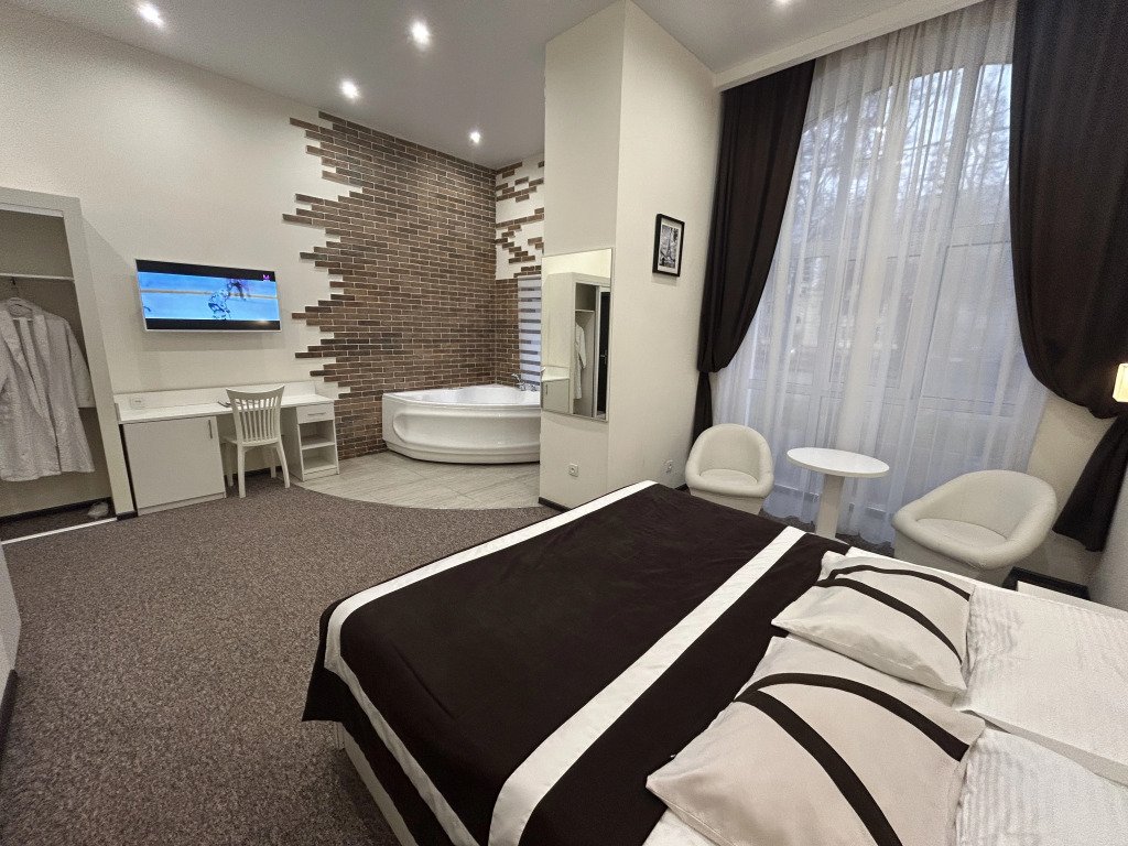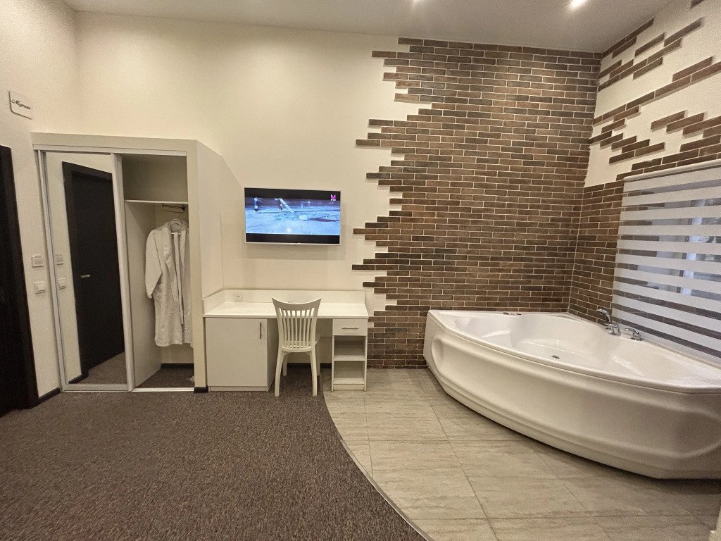 В номере гостей ждут телевизор и халат. Оснащение зависит от выбранной категории номера.