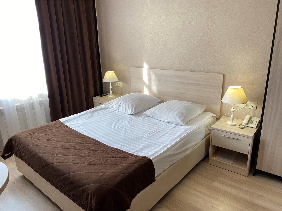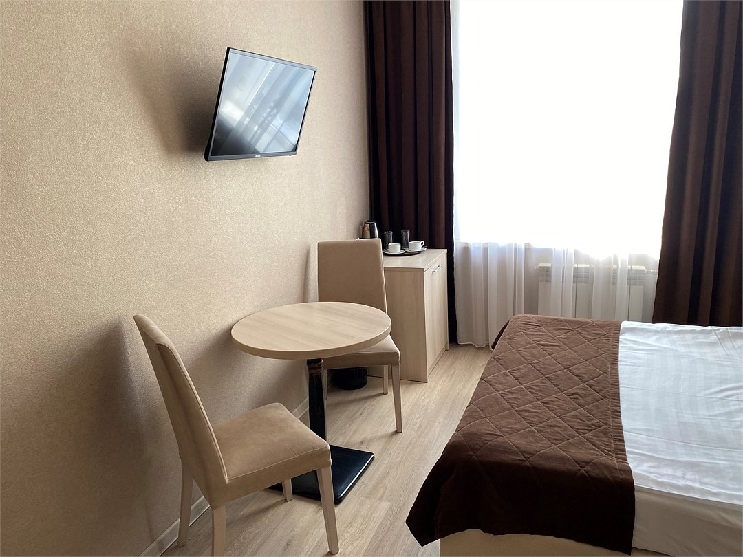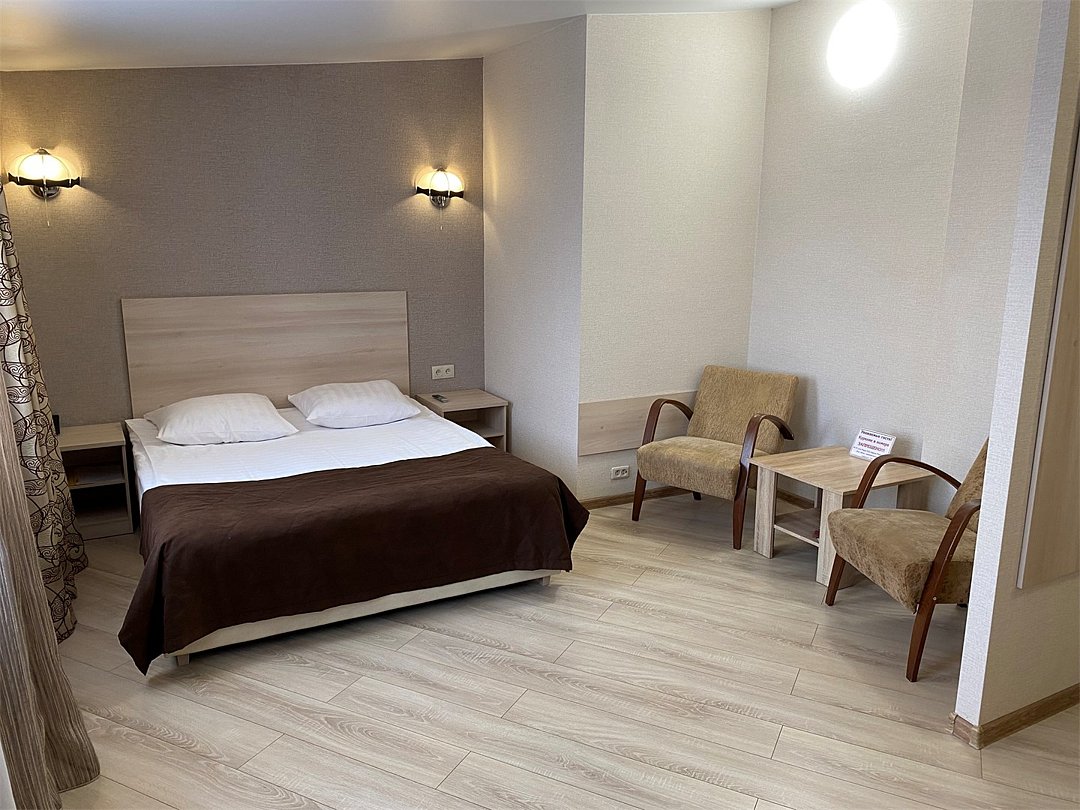 кабельное телевидение, Wi-Fi, телефон, кондиционер, ванная комната, душевая кабина, банные полотенца, тапочки, двуспальная кровать, журнальный столик, кресло, вид во двор, туалетные средства, внутренний телефон, телевизор с плоским экраном, мини-холодильникВ номере