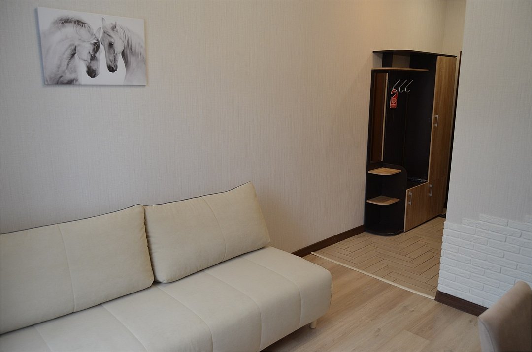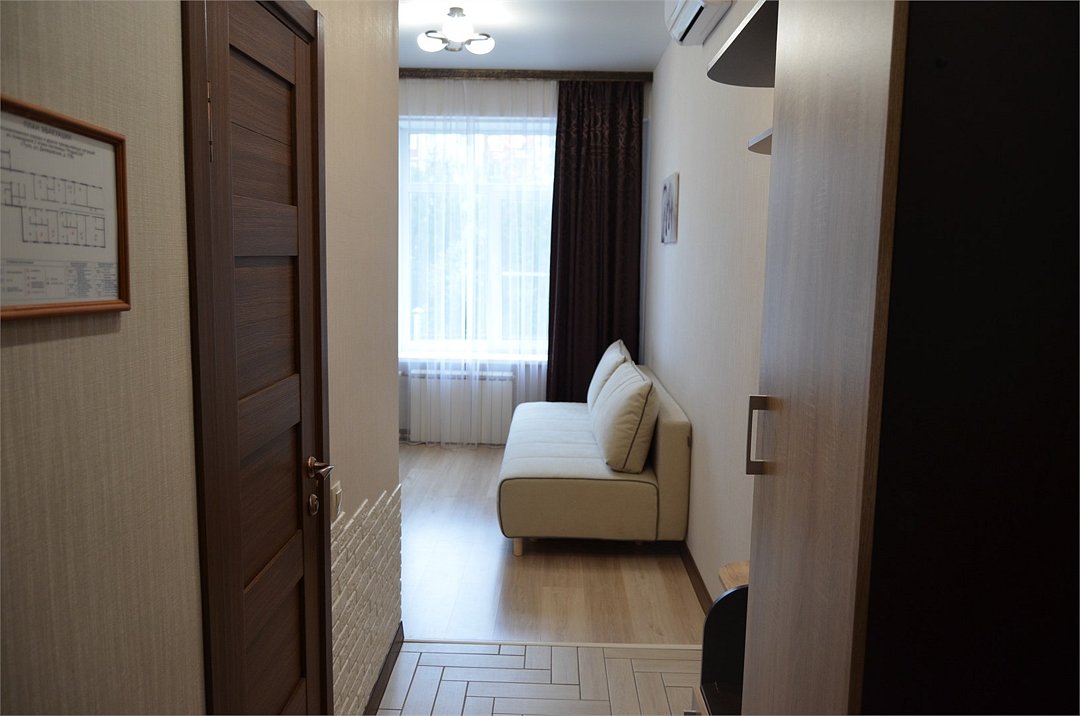 Wi-Fi, телефон, кондиционер, настольные лампы, фен, душевая кабина, банные полотенца, тапочки, двуспальная кровать, диван, тумбы, шкаф для одежды, письменный стол, две комнаты, чайный набор, чайник, унитаз, раковина, ковровое покрытие, плиточное покрытие, вид во двор, ламинат, высокие потолки, стул, туалетные средства, цифровое тв, внутренний телефон, телевизор с плоским экраном, мини-холодильник, москитная сеткаВ номере