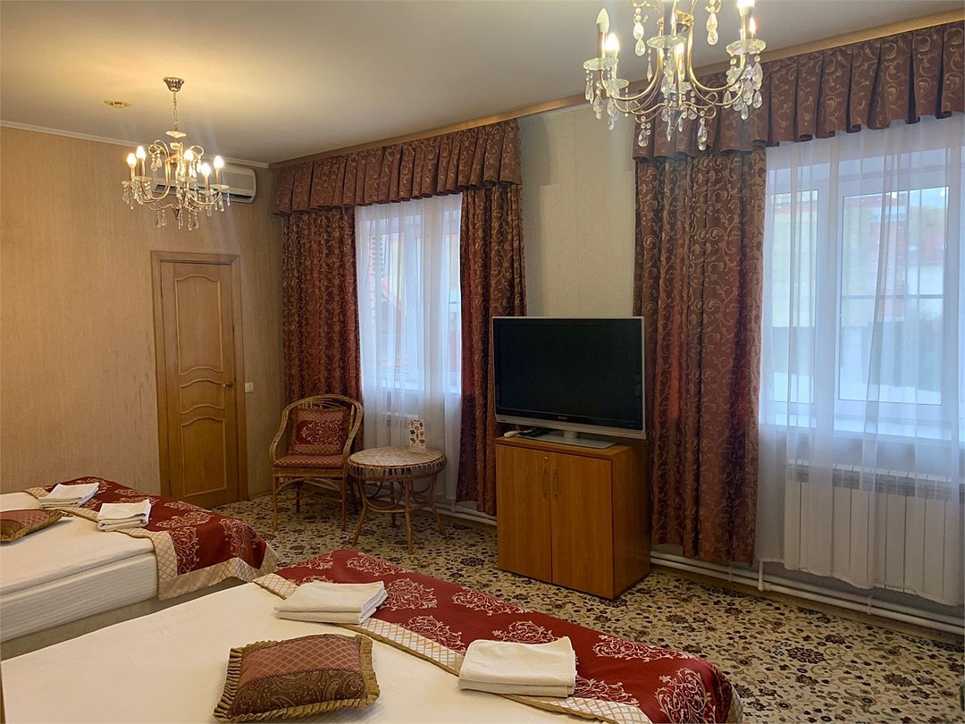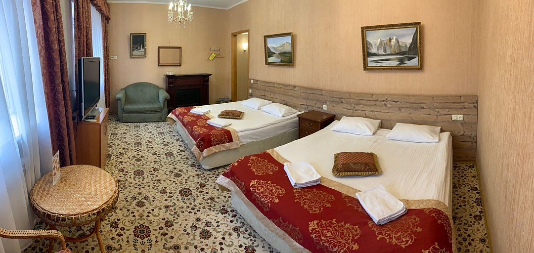 телевизор, Wi-Fi, интернет, кондиционер, ванна, двуспальная кровать, две двуспальные кровати, ортопедический матрас, душ, кулер на этаже, три односпальные кровати, туалет, цифровое тв, диван-кровать, три кровати «King size», можно с питомцамиВ гостиничном номере