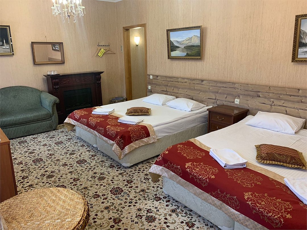 Номер категории "Полулюкс" оличается повышенной комфортностью, подходит для проживания семей с детьми. Удобные двухспальные кровати с прикроватными тумбочками, ванная комната, камин, диванУслуги и удобства