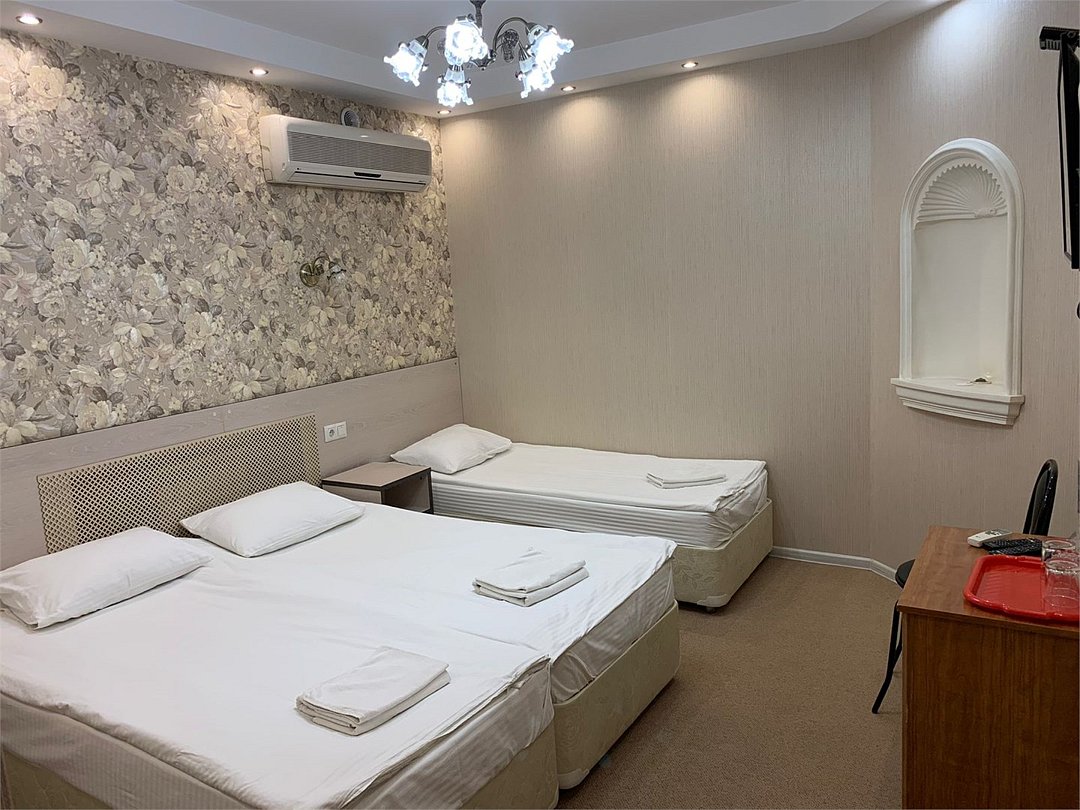 Трехместный номер БЕЗ ОКНА с отдельными кроватями, просторная ванная комната с душевой кабиной. В номере есть все необходимое для комфортного проживания, кондиционер, ТВ, удобная мебельУслуги и удобства