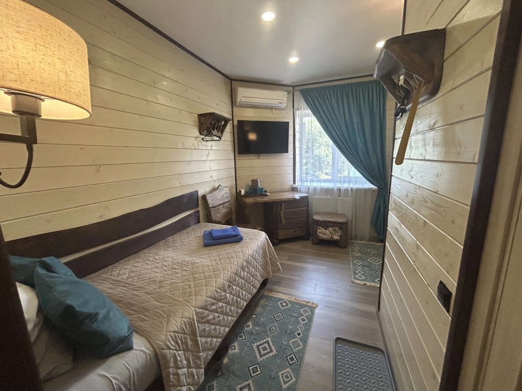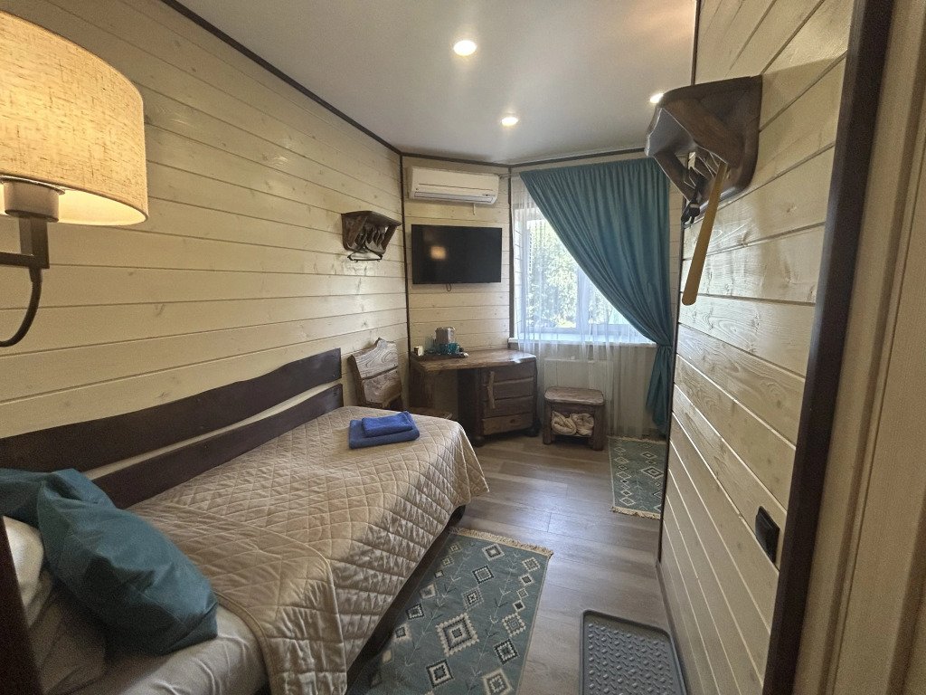 В номере вы найдёте телевизор, мини-бар и халат. Оснащение зависит от выбранной категории номера.