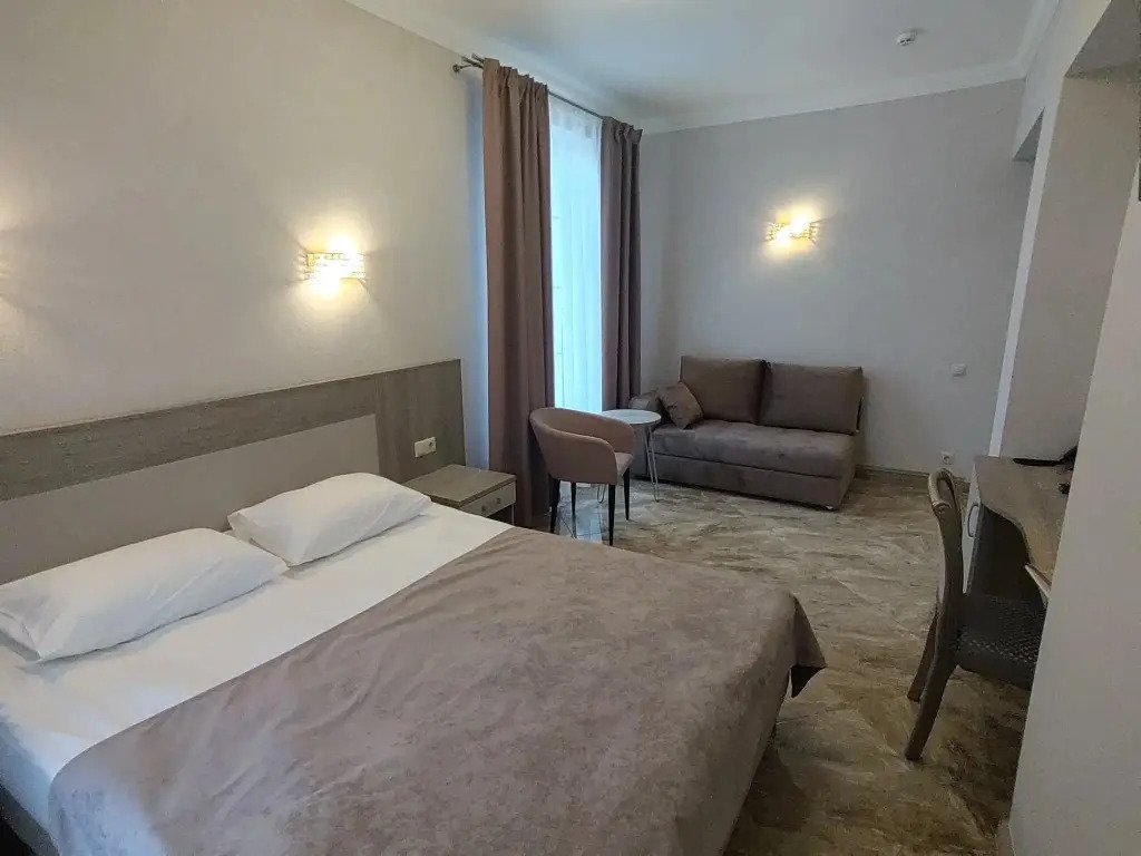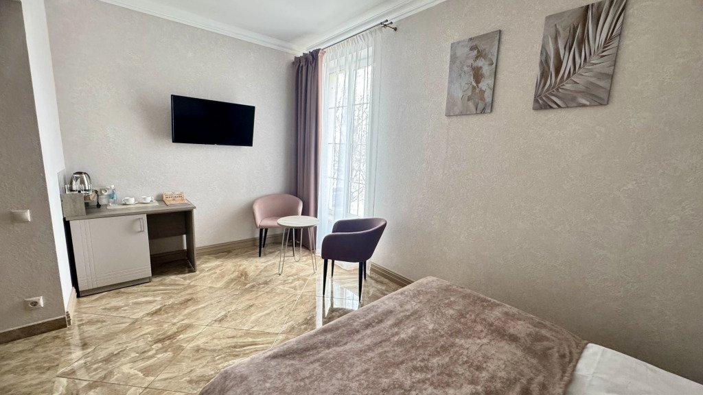В номере есть душ, телевизор, мини-бар, халат и тапочки.
