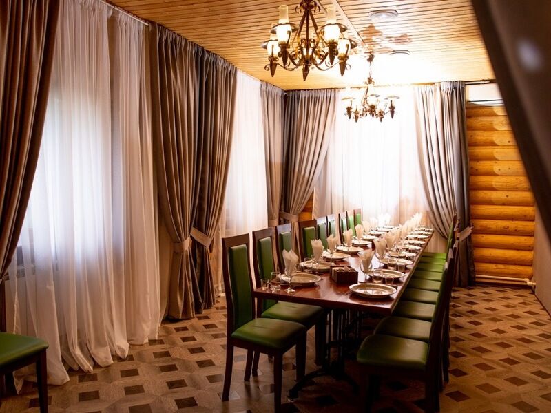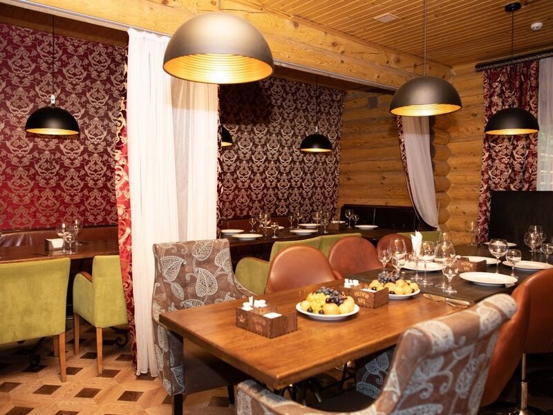 В здании работает ресторан с широким ассортиментом вкусных блюд. Заведение работает по меню. Есть бар, где можно заказать различные напитки. Территория оборудована летними беседками и верандами с зоной барбекю.
