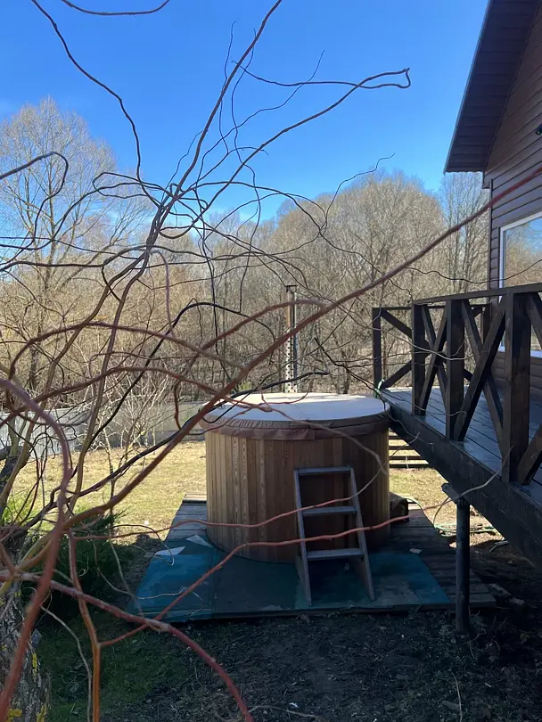 Барн-сота с баней, с холодной купелью, с зоной барбекю (с принадлежностями), можжевеловой беседкой 3D, с чаном фурако (летом с прохладной водой от плюс двадцати, зимой с горячей до плюс пятидесяти).