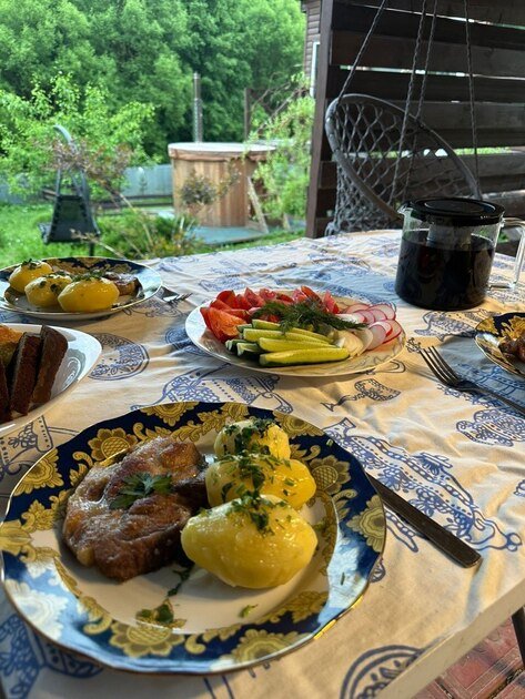 Дом вмещает четыре человека для комфортного проживания. Для пятого гостя предоставляем раскладушку.