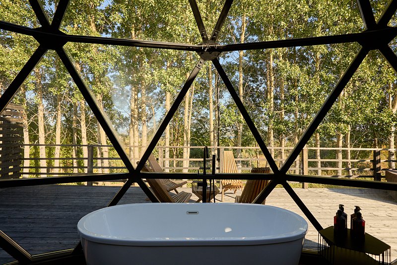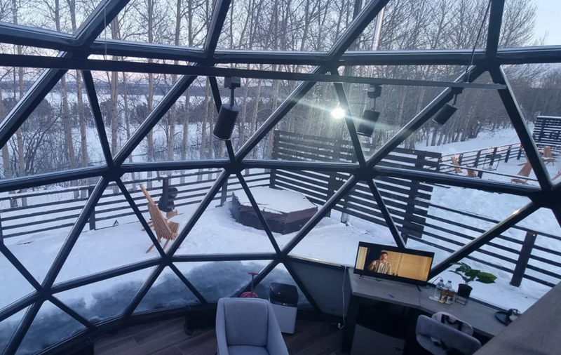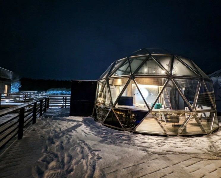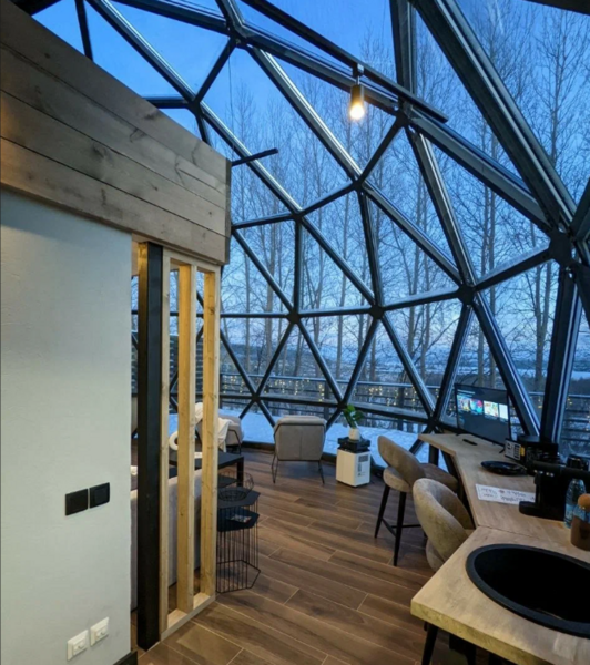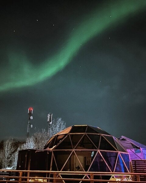 Летом можно отдохнуть на берегу реки среди тундры, а зимой насладиться удивительным северным сиянием. В каждом купольном доме отеля есть личная сауна, где вы сможете расслабиться и попариться после насыщенного дня. Дома оборудованы всем необходимым для комфортного пребывания, включая ванные с панорамными окнами и полы с подогревом.
