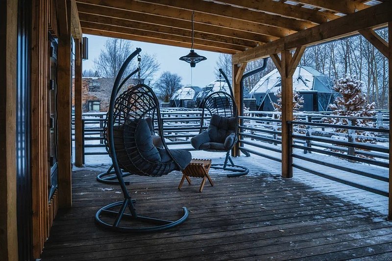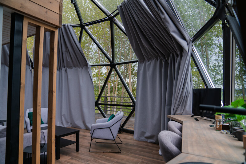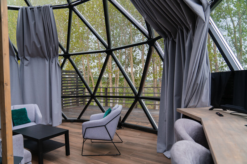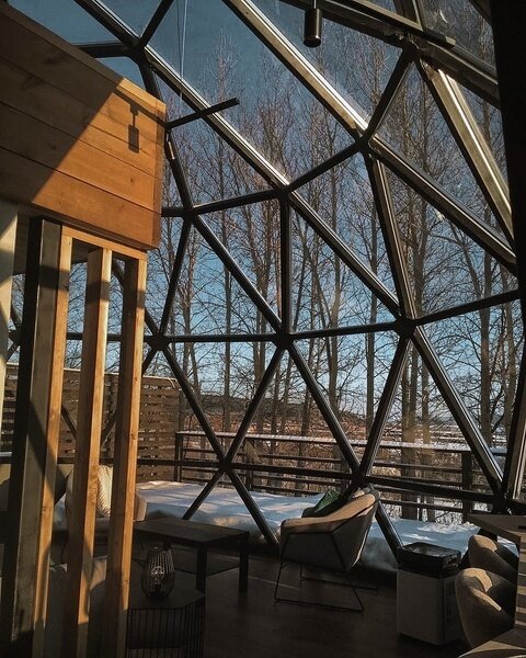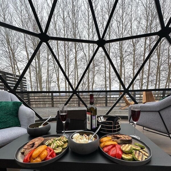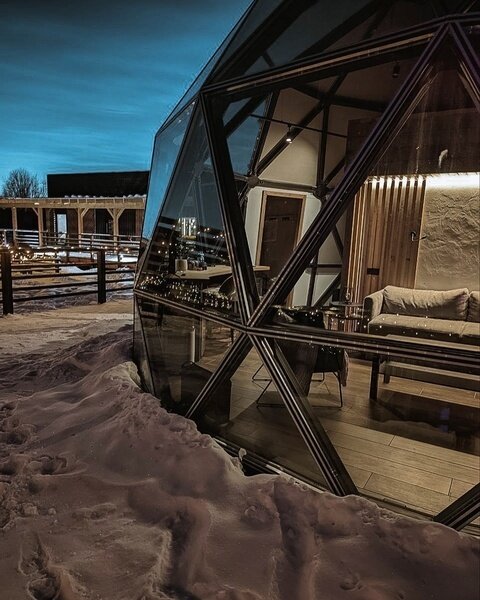 К сожалению все купола были заняты и нам удалось попасть только в новые зеркальные дома, из только только поставили и мы были одни из первых гостей! Мы ни капли не пожалели и остались довольны!! В след раз хотим попробовать остановиться в куполе и сравнить ! -