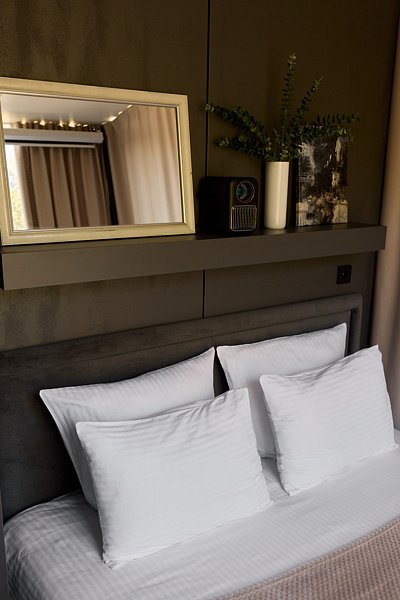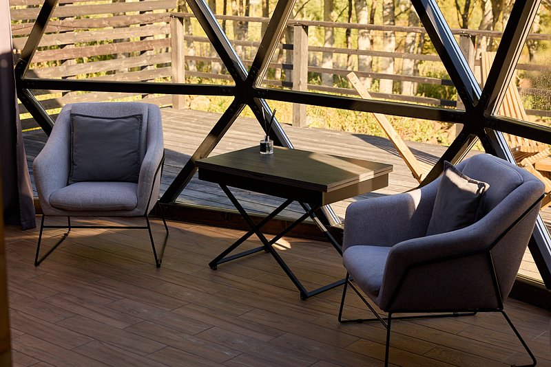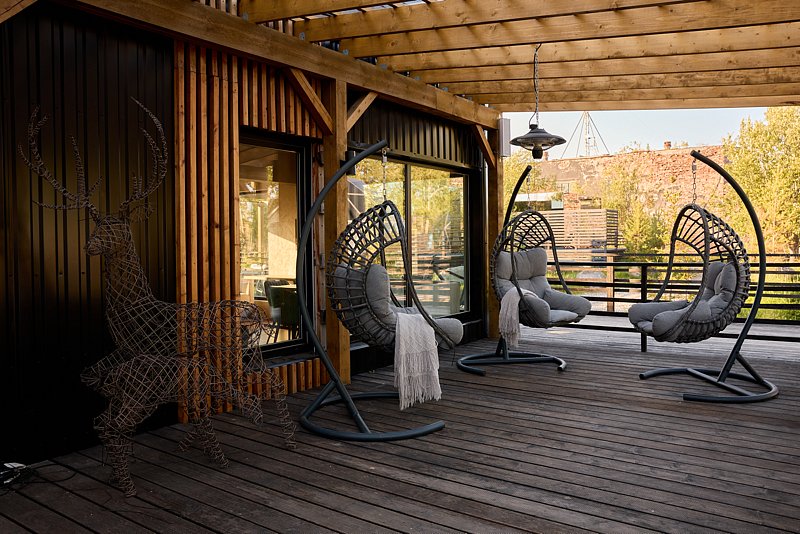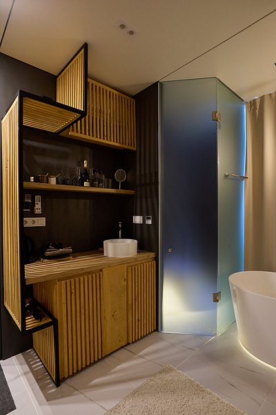 Дизайн отеля, созданный известным дизайнером Викторией Филимоновой, подчеркнет уют и уникальность места. Насладитесь парением в сибирском чане с любимым человеком и бокалом шампанского, окунитесь в атмосферу релаксации и комфорта.