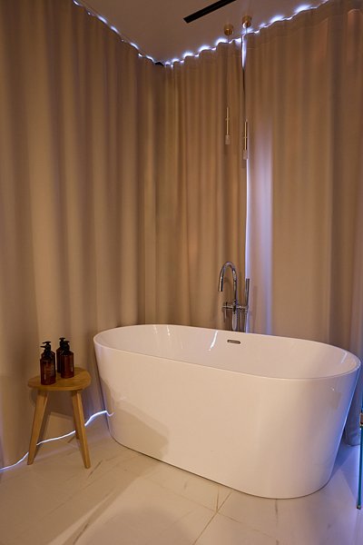 Сюрприз в ванне с лепестками роз, свечами и сезонными фруктами, шампанским в кулере — это идеальный способ порадовать свою половинку и создать незабываемые воспоминания вместе. Чтобы устроить такой сюрприз, нужно сообщить отелю об этом заранее. Вам помогут организовать все до мелочей. Услуга возможна только при бронировании дома.