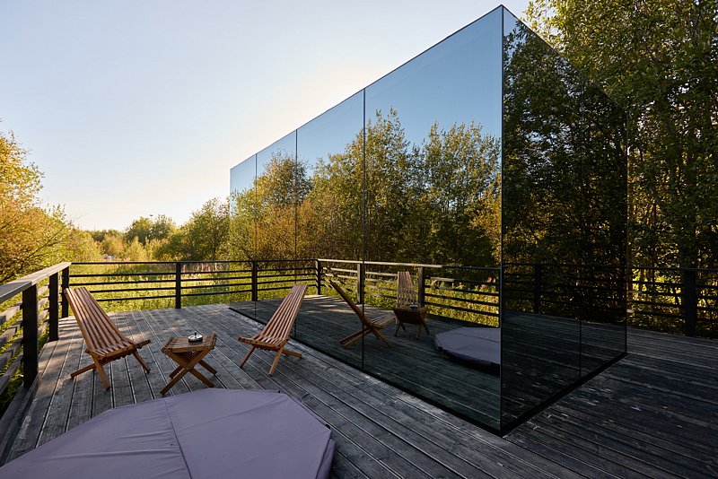 Зеркальный дом Премиум с душем с красивым видом из окна