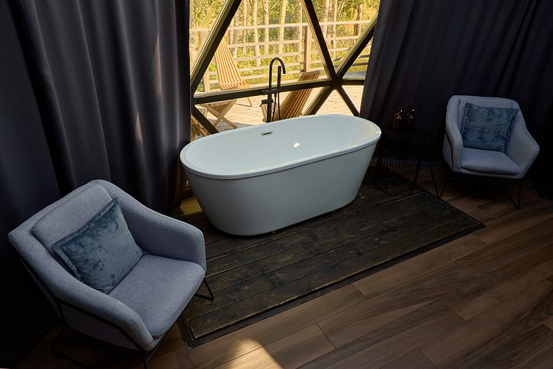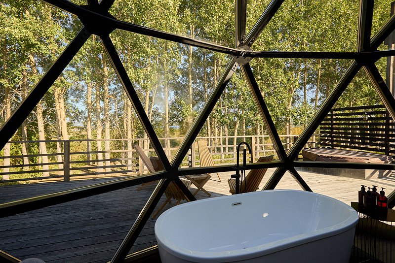 Зеркальный дом Премиум (с ванной) с красивым видом из окна