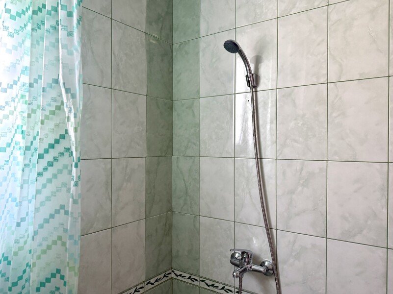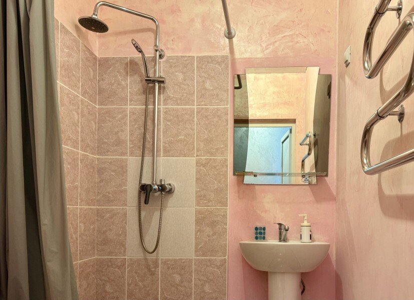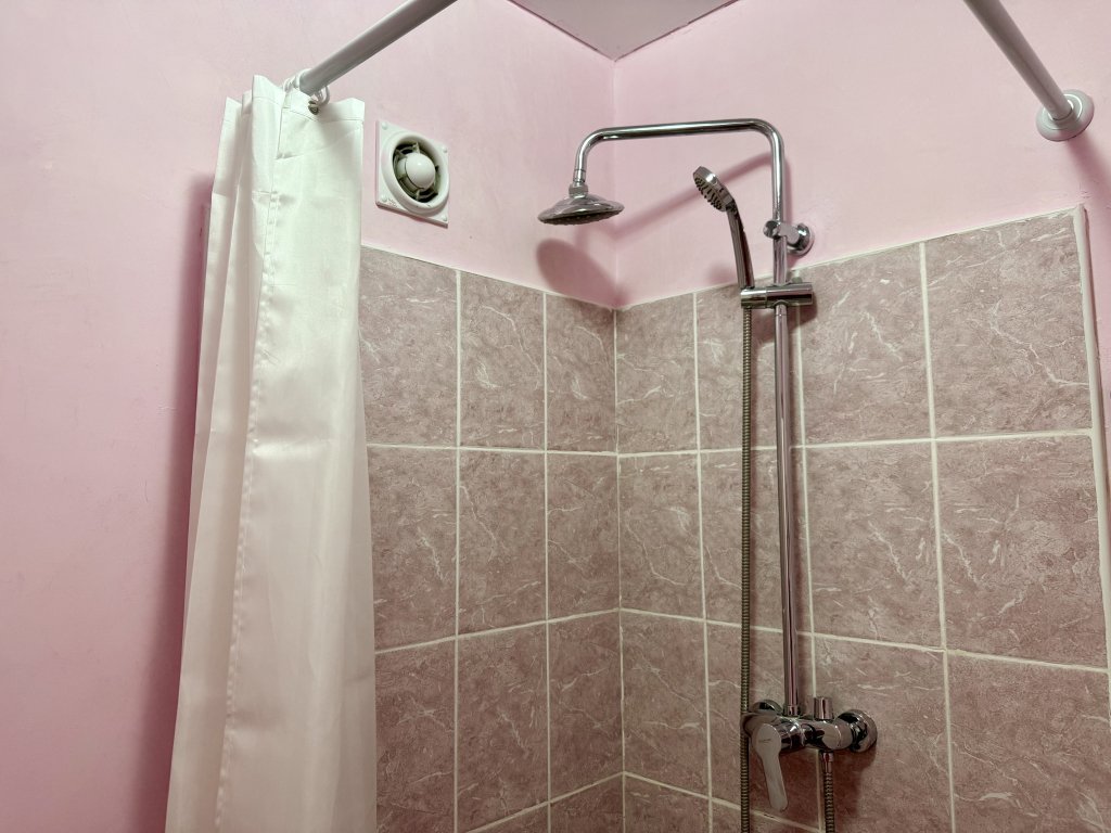 В комнате есть индивидуальная ванная комната с косметическими принадлежностями, телевизор и шкаф.