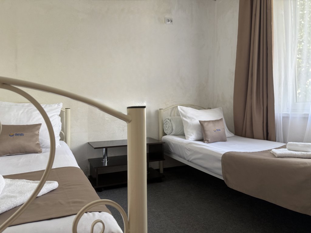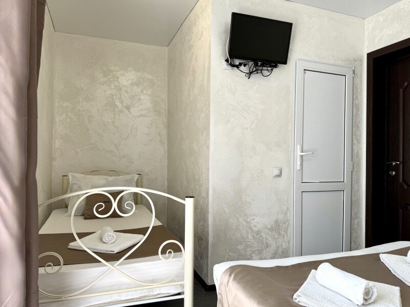 Одна односпальная кровать, одна двуспальная кроватьВ гостиничном номере