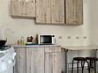 В доме предусмотрена общая гостиная с кухонной зоной, где имеется вся необходимая мебель, столовые приборы и бытовая техника.