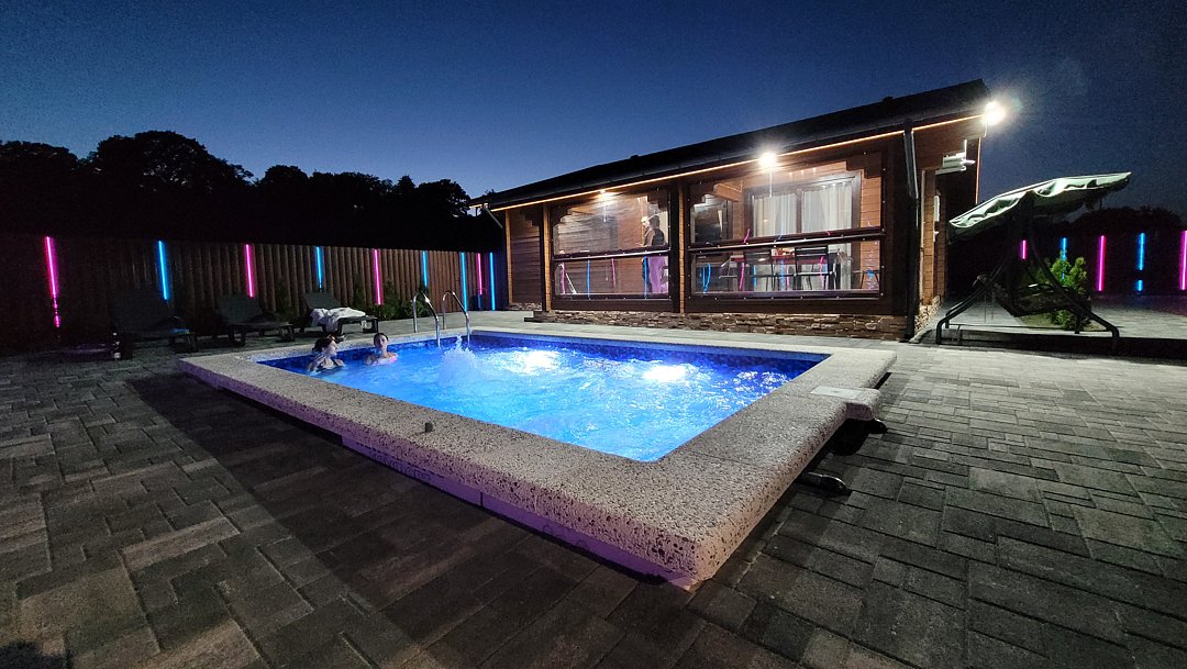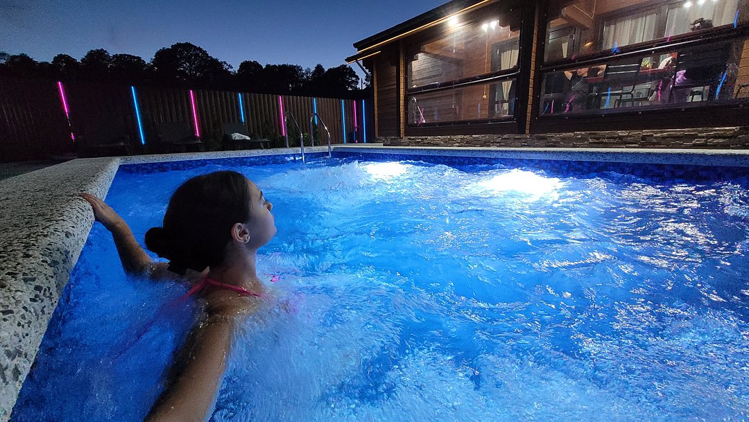 На базе отдыха «Гравитация» гостей ждет подогреваемый бассейн, который впечатляет не только своей подсветкой и гидромассажем, но и великолепным видом на горы и озеро. Это идеальное место для отдыха и наслаждения природой в атмосфере уединения.