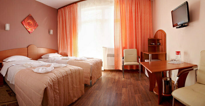 Номер состоит из одной жилой комнаты с двумя стандартными кроватями и ванной комнатой с душевой кабиной, рассчитанный на проживание двух человек.