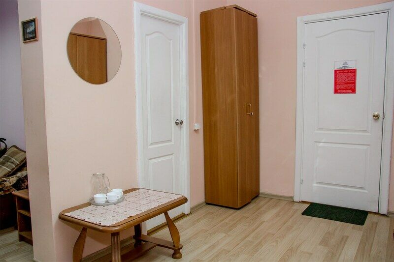 Номер состоит из двух жилых комнат с тремя кроватями и ванной комнатой с душевой кабиной, рассчитанный на проживание трёх человек.