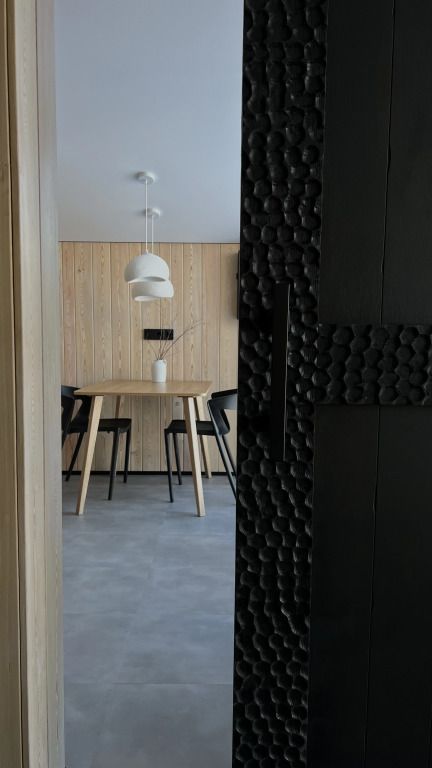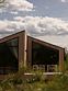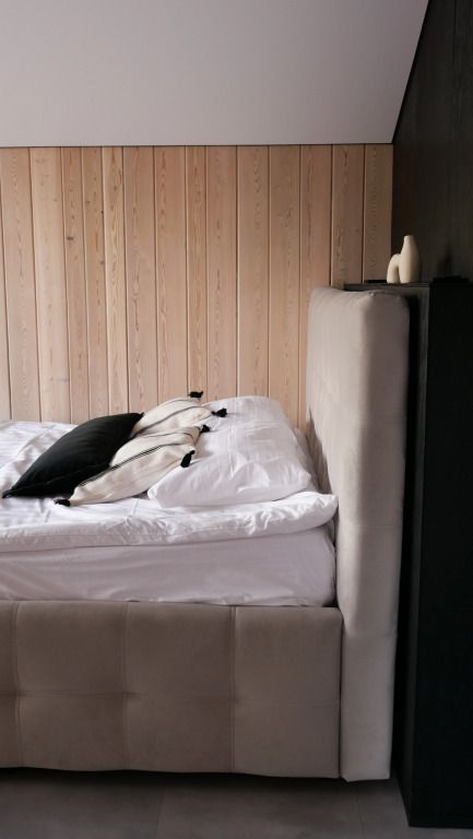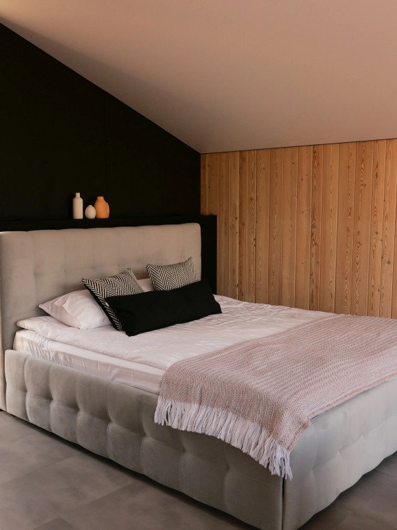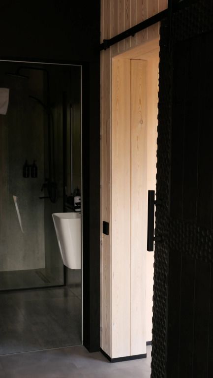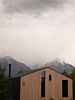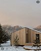 Просторный дом в стиле barn house, с панорамными окнами и видом на горы. В едином пространстве с высоким потолком расположена гостевая зона с камином, спальня, зона кухни и гардеробной, а также санузел.