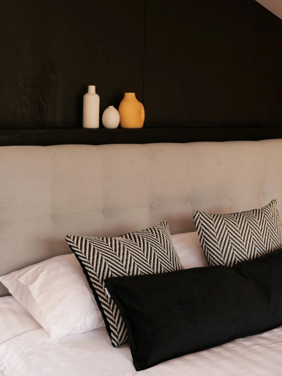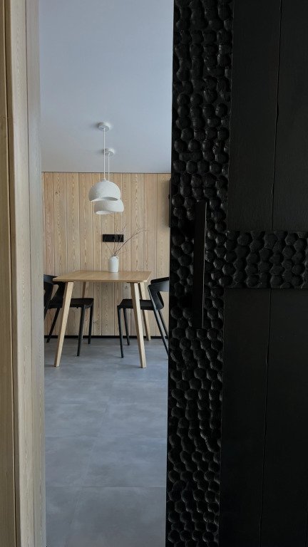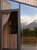 Уютный дом с панорамными окнами и видом на горы. В доме расположено две отельные комнаты, гостевая и спальня, есть зона кухни и гардеробной, а также просторный санузел.