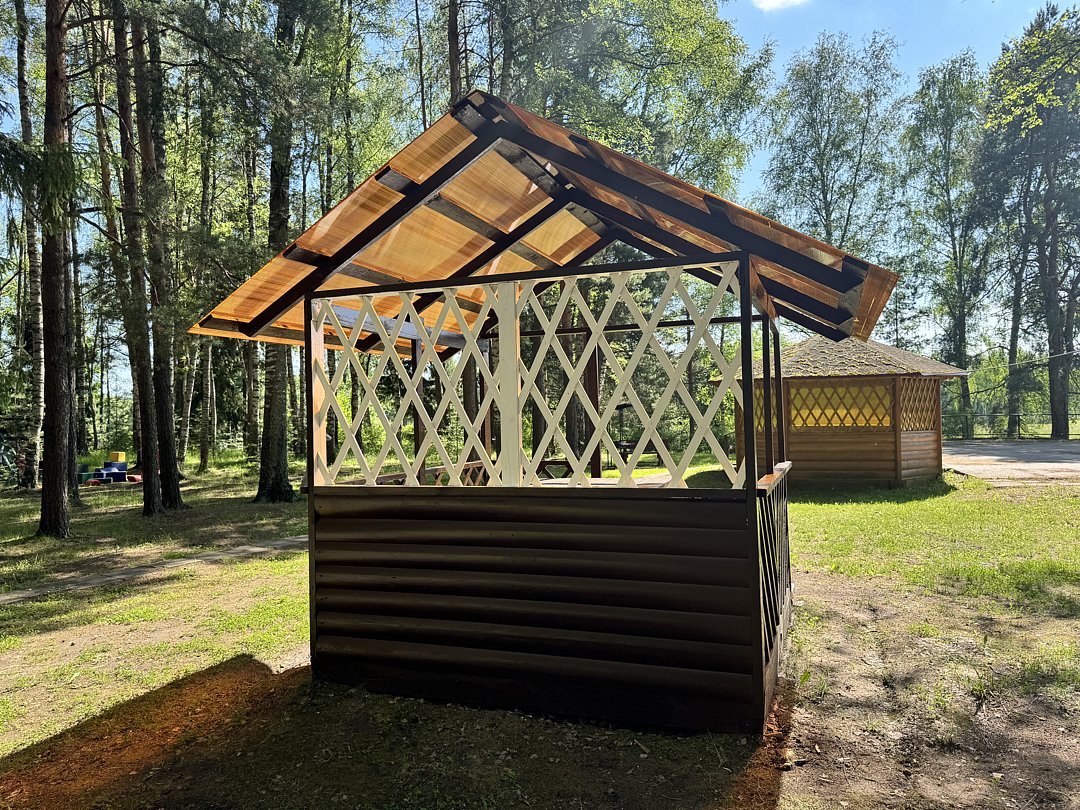 В 5 м от банного комплекса вы можете дополнительно воспользоваться беседкой и мангалом.