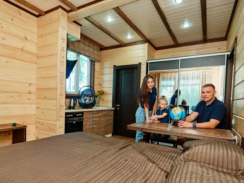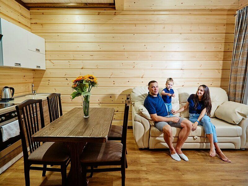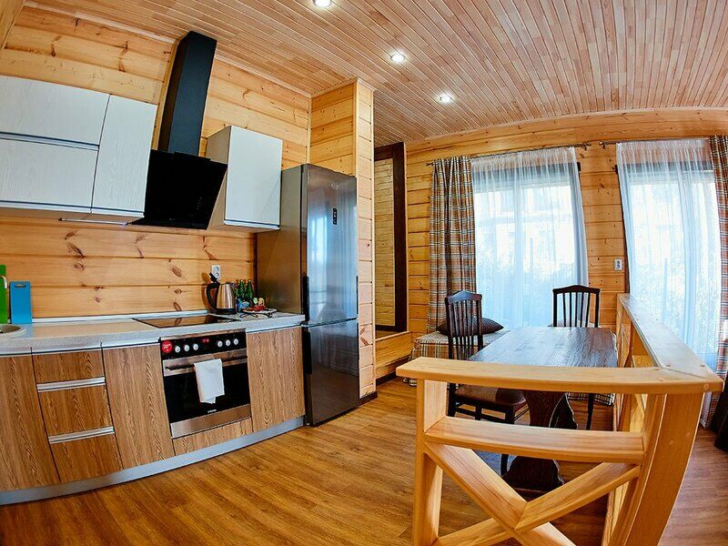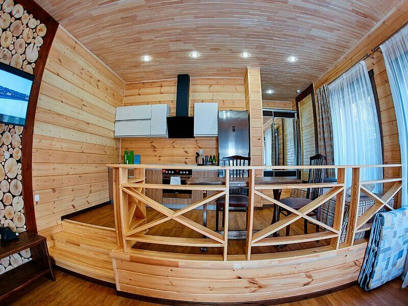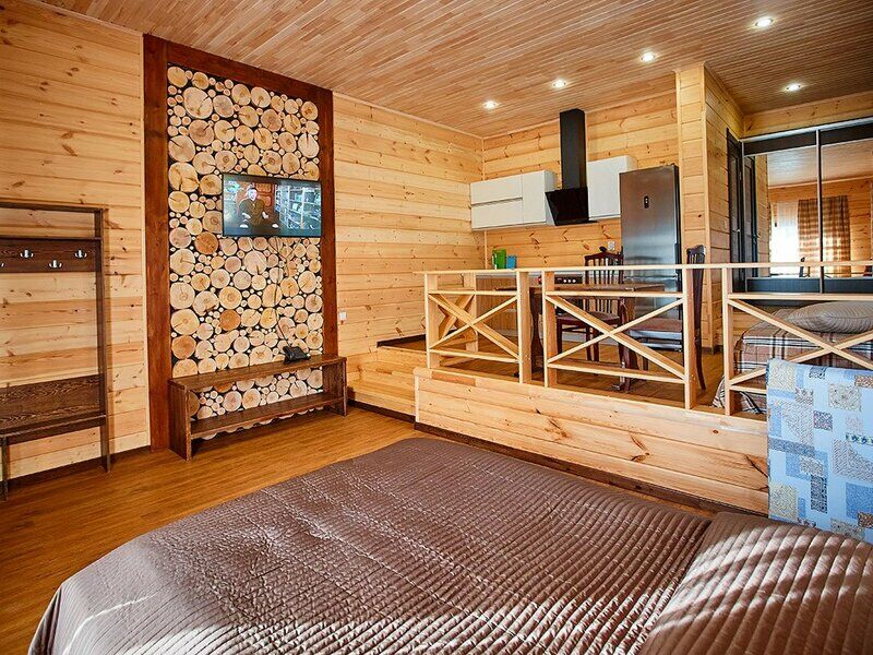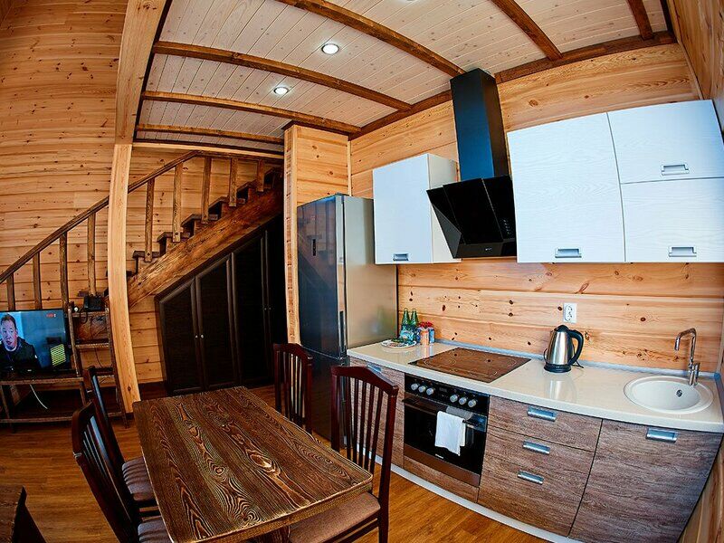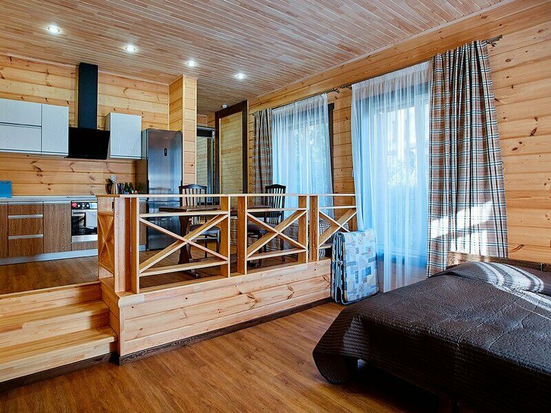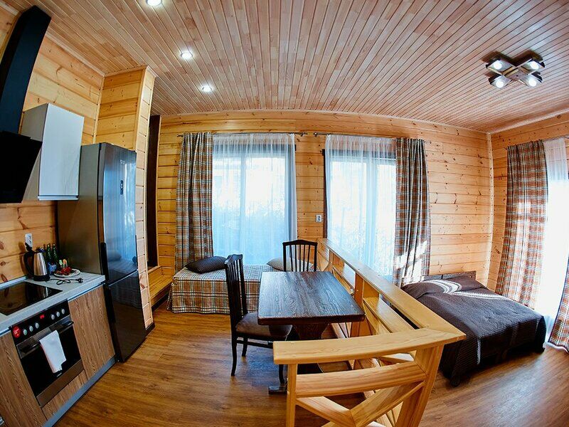 Апартаменты представлены несколькими категориями, но выполнены в единой стилистике: со стенами из светлого бруса, мебелью из массива в темных тонах, характерным текстилем в клетку. Каждый номер оснащен балконом и полноценной кухней с электрической плитой, холодильником, посудой, обеденным столом и стульями. Для комфорта гостей предусмотрена удобная мебель, установлены TV, телефон, доступ Wi-Fi, мини-бар, сейф. В санузлах - теплый пол, душ, гигиенические принадлежности, халаты, фен.