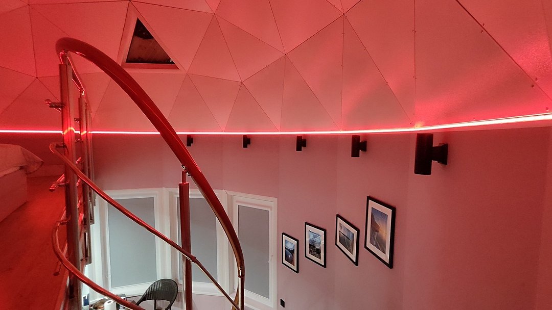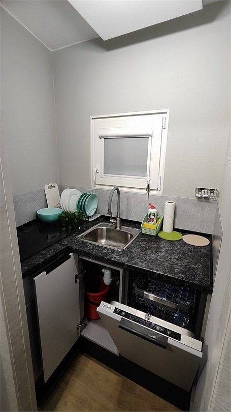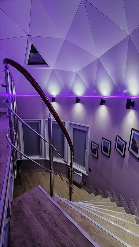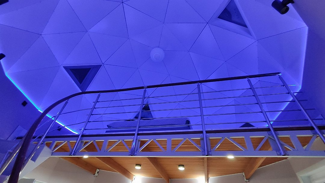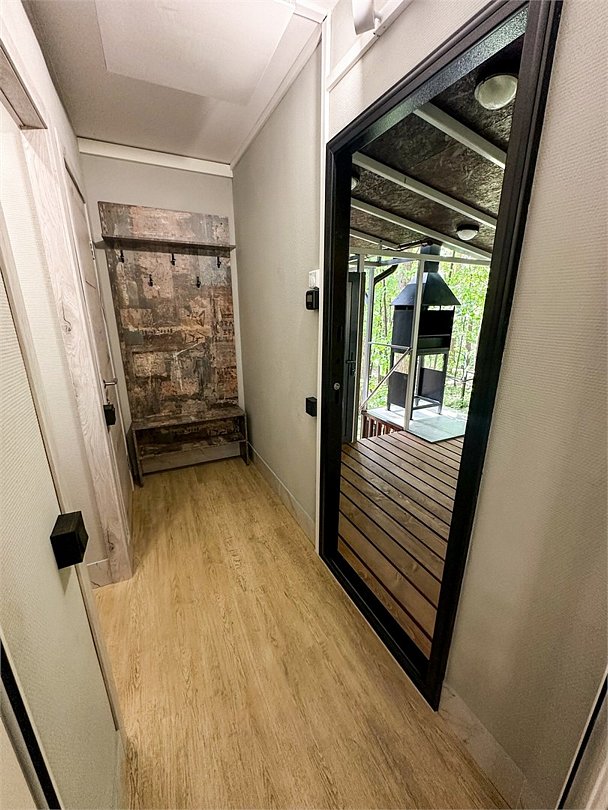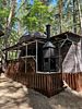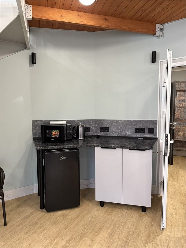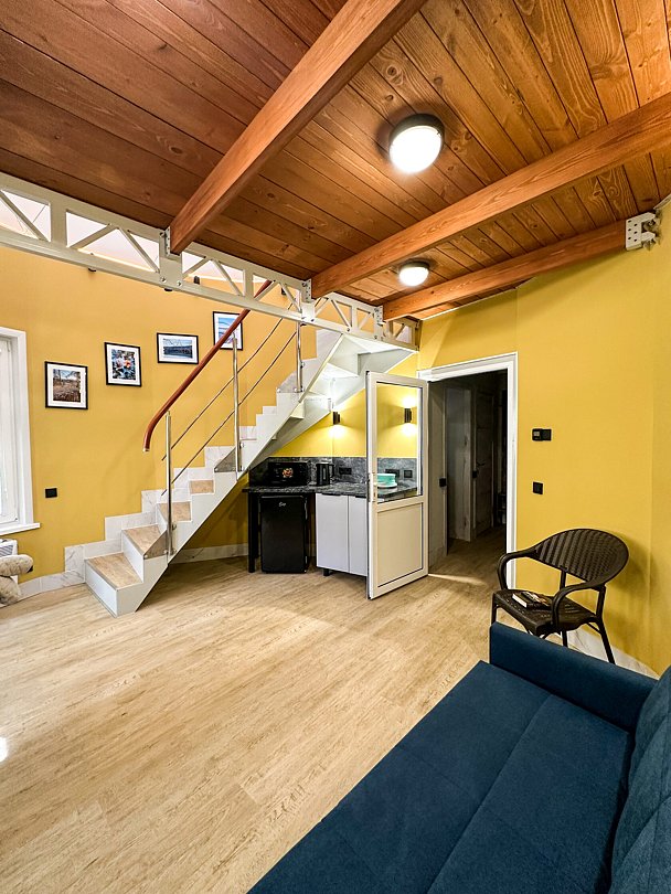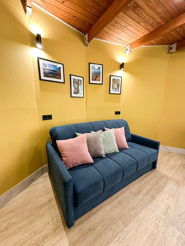 Внутри каждого домика предусмотрены все удобства для комфортного проживания. Гостиная с ортопедическим двуспальным диваном и обеденной зоной оборудована всем необходимым: от холодильника до посудомоечной машины. Кухня оснащена современными приборами и кухонными принадлежностями, что позволяет готовить любимые блюда с легкостью. На мансарде находится полноценное место для отдыха с купольной крышей и мансардными окнами, наполняющими пространство естественным светом.