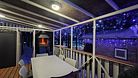Первый этаж — двадцать семь квадратных метров, мансарда — одиннадцать квадратных метров, веранда со стационарным мангалом и обеденной зоной — пятнадцать квадратных метров. Декоративная LED-подсветка по периметру внутри помещения.